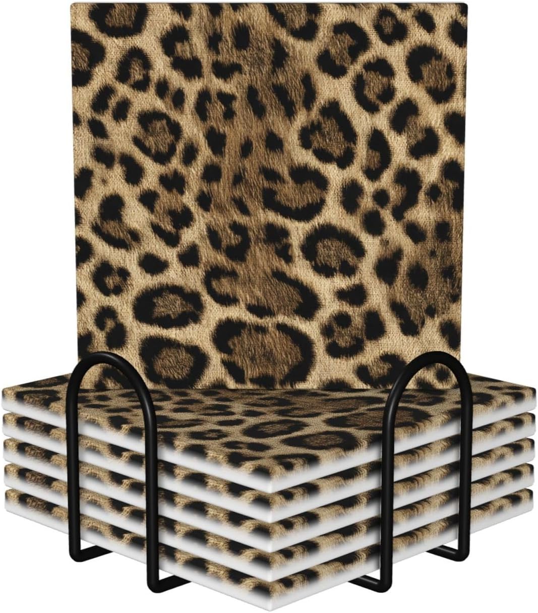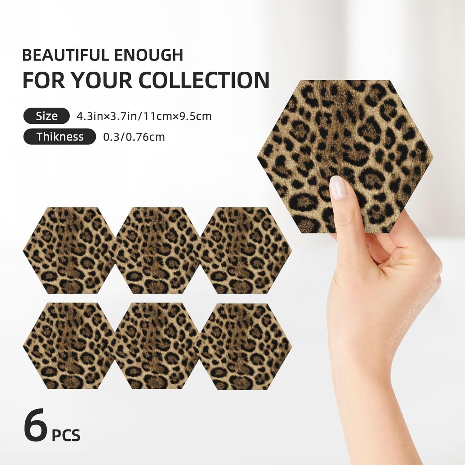 Product Name: DCEHGEW Ceramic Drink CoastersMaterial Type: Ceramic with cork bottomSize: Round: 4.1 x 4.1 inches, Square: 3.9 x 3.9 inches, Hexagon: 4.3 x 3.7 inchesPattern: Brown leopard print About Our Ceramic Absorbent Coasters:Product Features - Crafted from high-quality ceramic, these coasters are odorless and eco-friendly. Their superior absorbency keeps your surfaces dry by quickly soaking up spills from coffee, cola, and other beverages within 10-15 seconds.Applicable Scenarios - Perfect for adding a stylish touch to your kitchen, living room, bar, hotel, or restaurant. These coasters are an ideal present for birthdays, Mother's Day, Father's Day, Valentine's Day, anniversaries, housewarming celebrations, or Christmas.Accessory Structure - Each set includes 6 ceramic coasters with cork bottoms, accompanied by a sleek black metal stand for organized and aesthetic storage. Choose from three different shapes to suit your style and needs.Washing Instructions - Easily clean these coasters with water or a damp cloth.Special NoteDue to different measurement methods, a deviation of up to 0.3 cm in size is considered normal.Please Note:The product images are for reference only. Actual products may vary slightly due to production factors such as batch differences and machine settings. Minor variations in color, position, and size are normal and not considered defects. Thank you for your understanding!Customer Service:We want to make sure you have an amazing experience with us. Please contact us with any feedback you may have. We love to hear from you and usually respond within 12-24 hours.