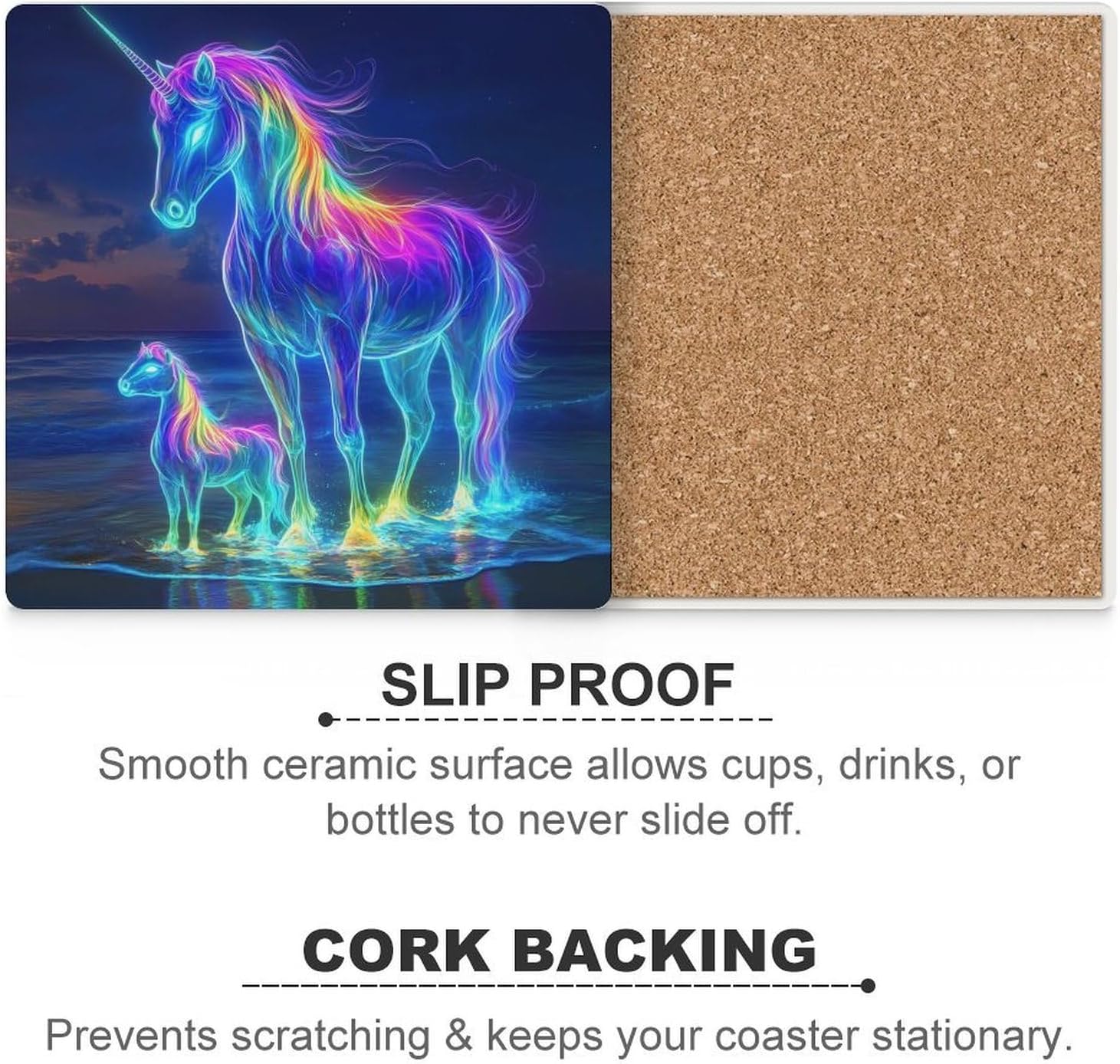 Cute Printed Absorbent Ceramic Coaster for Drinks Funny Coasters with Cork Base Suitable for Kinds of Mugs, Cups, Prevent Tabletop Wear And Scratches, and is Easy to Clean