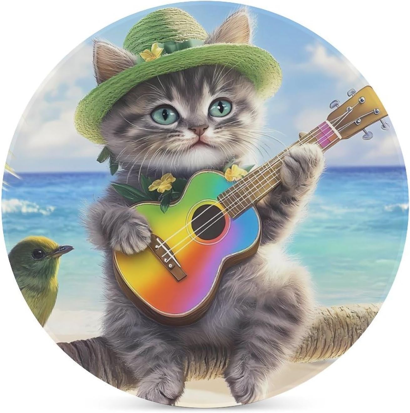 Cute Printed Round Drinks Absorbent Ceramic Coaster with Cork Base Suitable for Kinds of Mugs, Cups, Prevent Tabletop Wear And Scratches, and is Easy to Clean