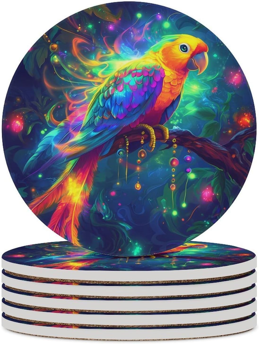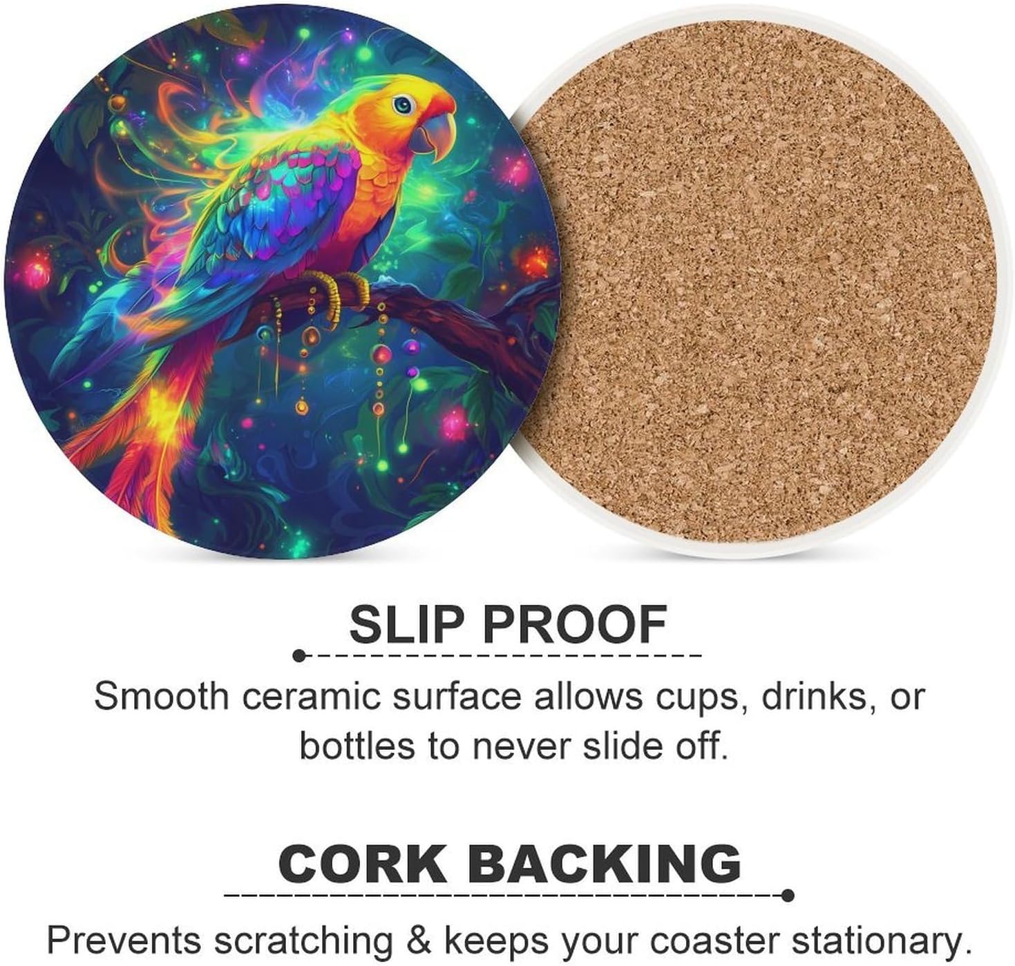 Cute Printed Round Drinks Absorbent Ceramic Coaster with Cork Base Suitable for Kinds of Mugs, Cups, Prevent Tabletop Wear And Scratches, and is Easy to Clean