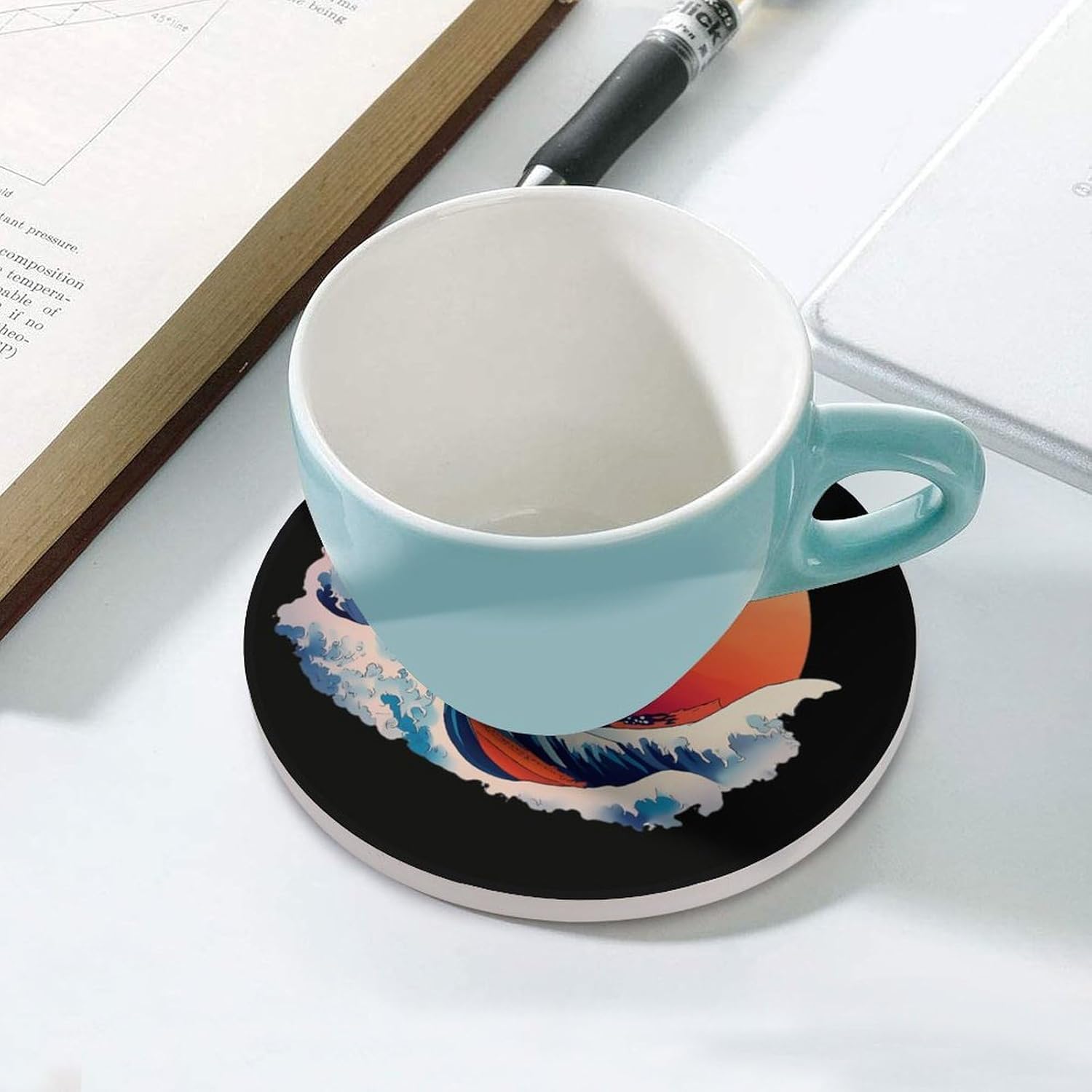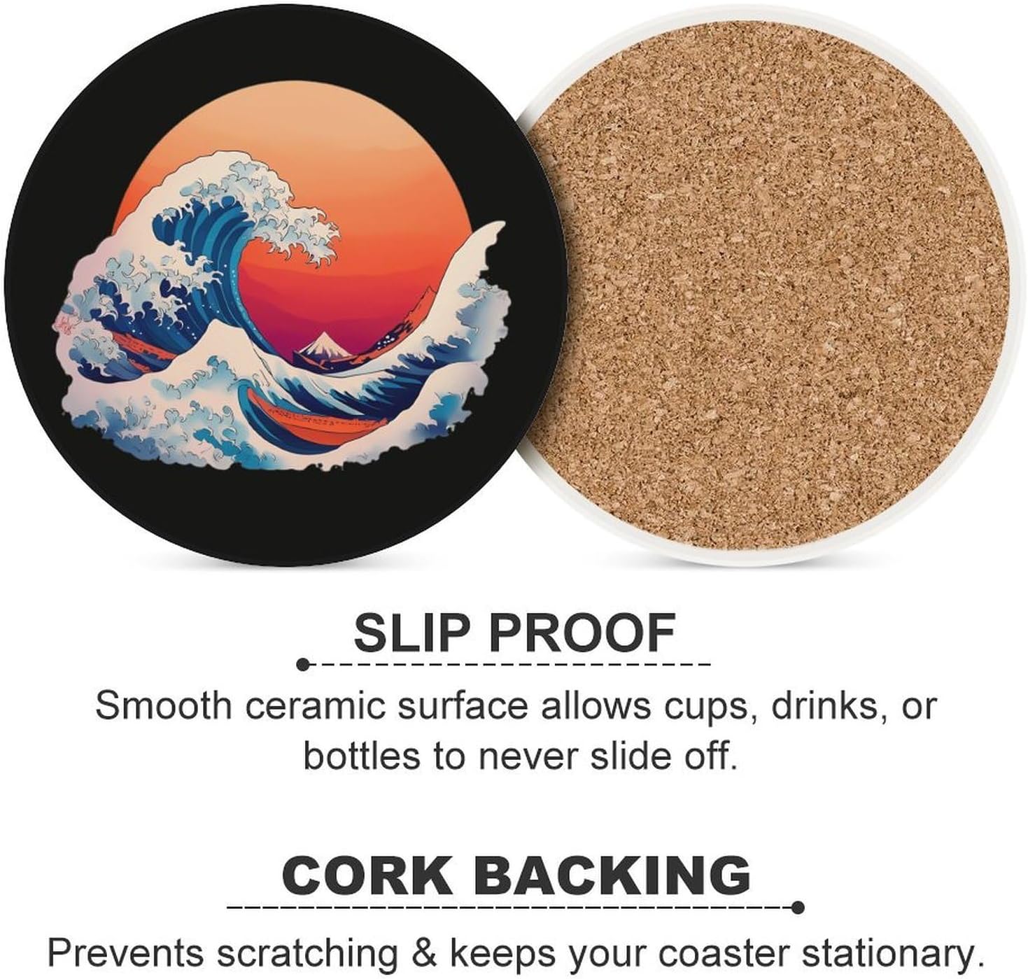 Cute Printed Round Drinks Absorbent Ceramic Coaster with Cork Base Suitable for Kinds of Mugs, Cups, Prevent Tabletop Wear And Scratches, and is Easy to Clean