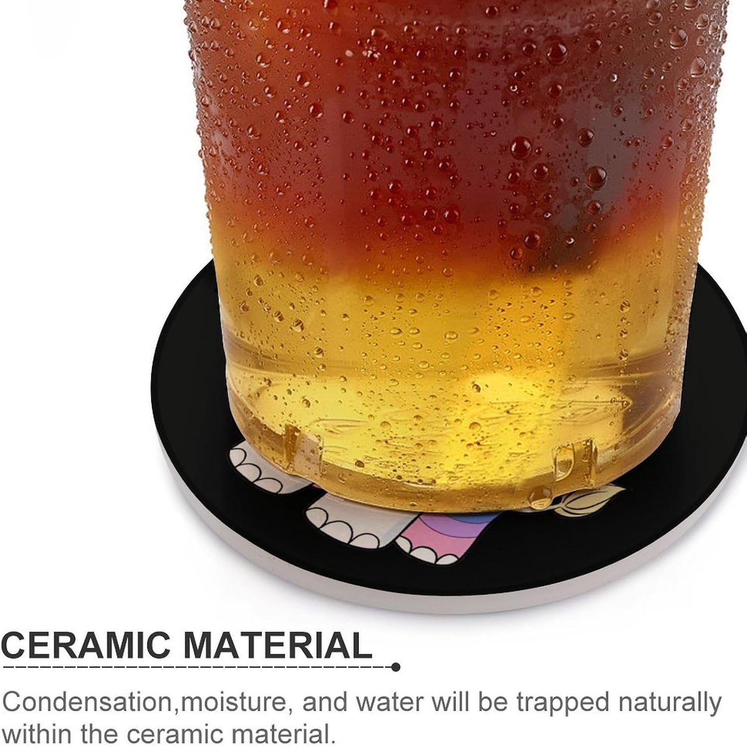 Cute Printed Round Drinks Absorbent Ceramic Coaster with Cork Base Suitable for Kinds of Mugs, Cups, Prevent Tabletop Wear And Scratches, and is Easy to Clean