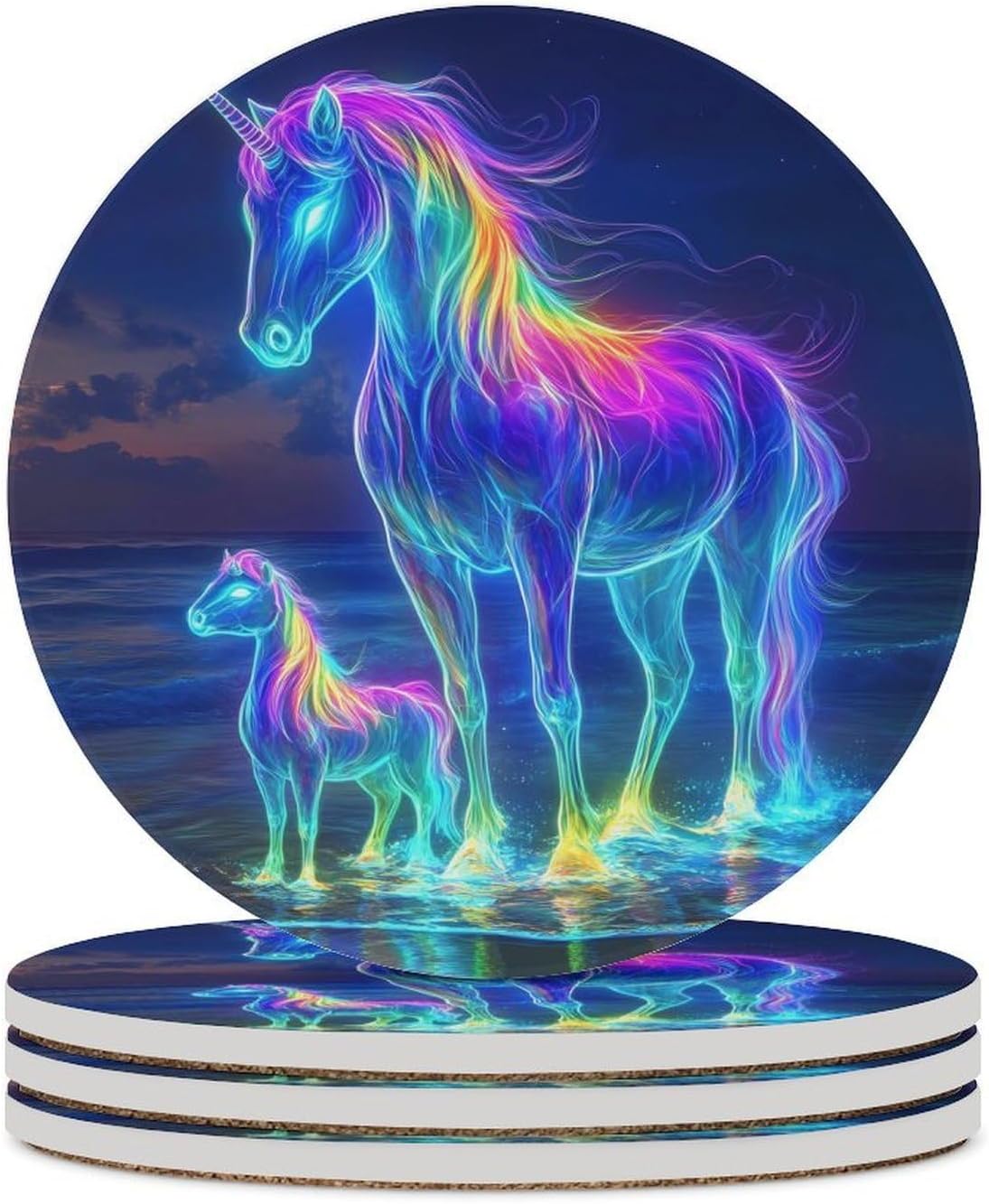 Cute Printed Round Drinks Absorbent Ceramic Coaster with Cork Base Suitable for Kinds of Mugs, Cups, Prevent Tabletop Wear And Scratches, and is Easy to Clean