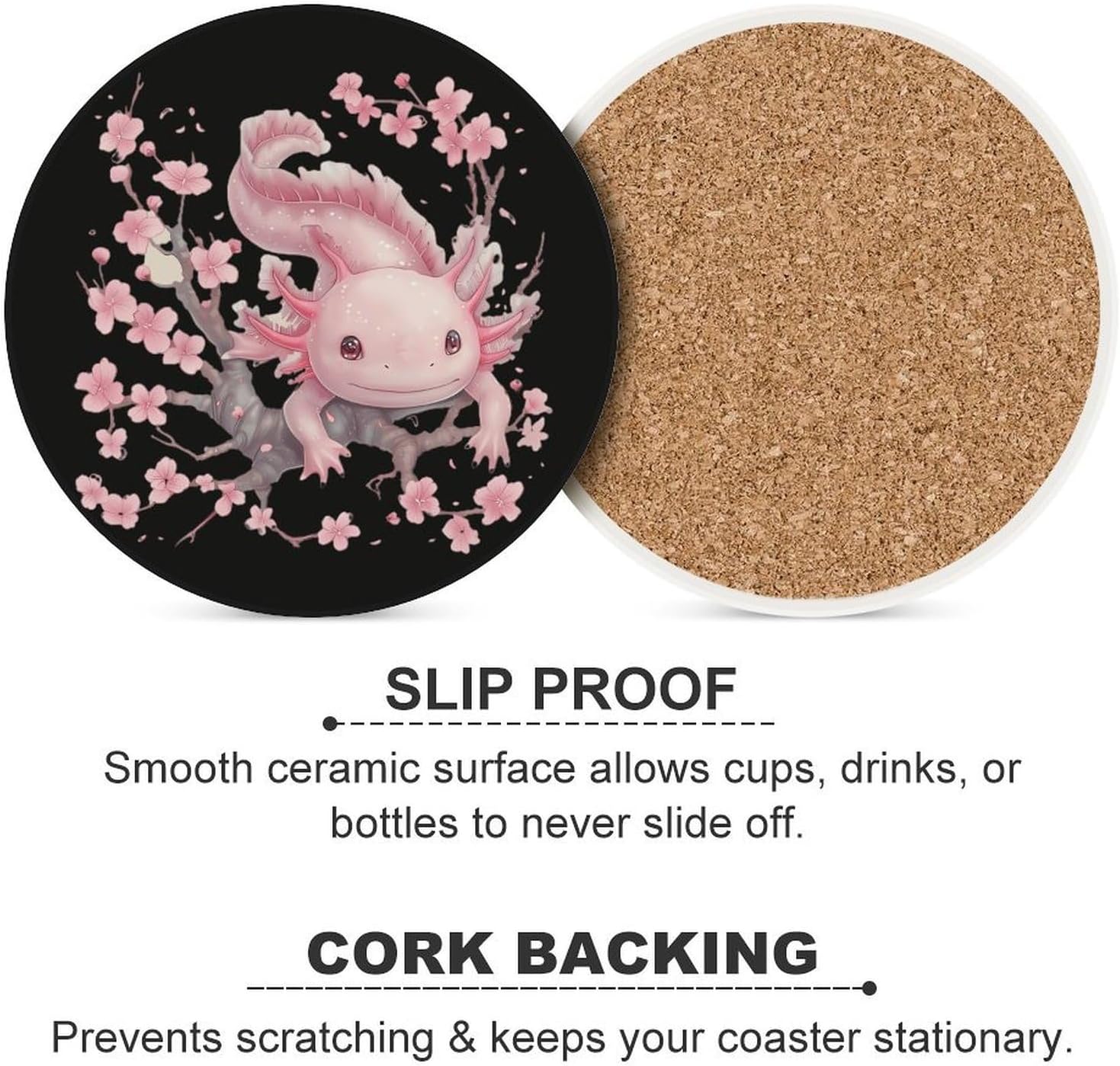 Cute Printed Round Drinks Absorbent Ceramic Coaster with Cork Base Suitable for Kinds of Mugs, Cups, Prevent Tabletop Wear And Scratches, and is Easy to Clean