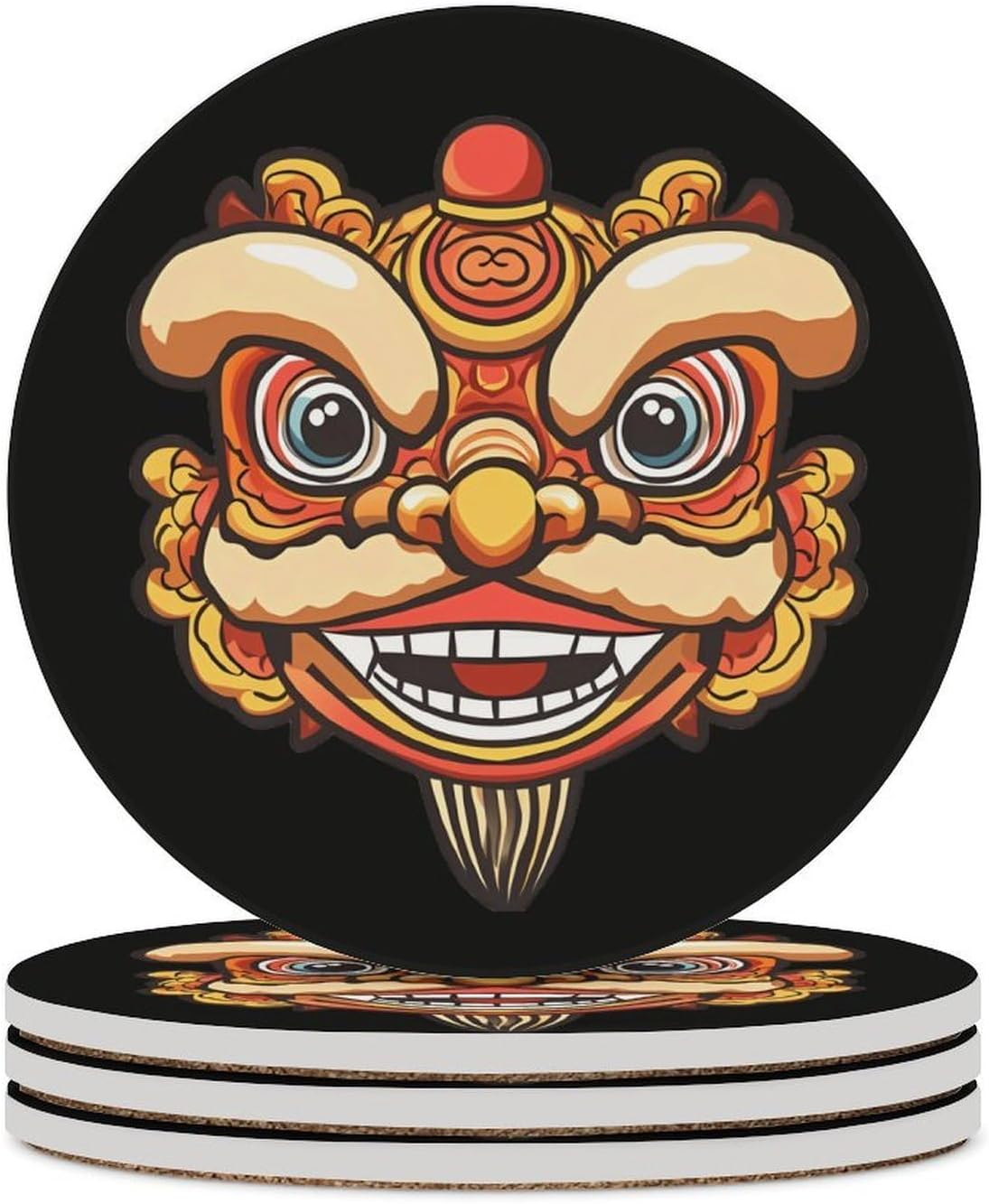 Cute Printed Round Drinks Absorbent Ceramic Coaster with Cork Base Suitable for Kinds of Mugs, Cups, Prevent Tabletop Wear And Scratches, and is Easy to Clean