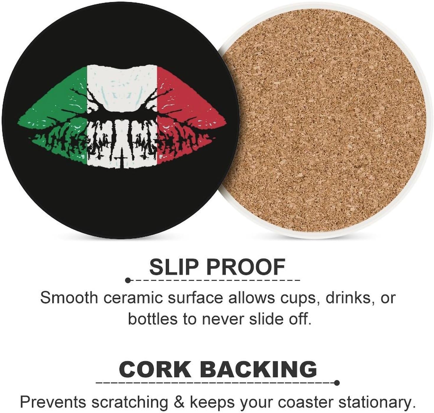 Cute Printed Round Drinks Absorbent Ceramic Coaster with Cork Base Suitable for Kinds of Mugs, Cups, Prevent Tabletop Wear And Scratches, and is Easy to Clean