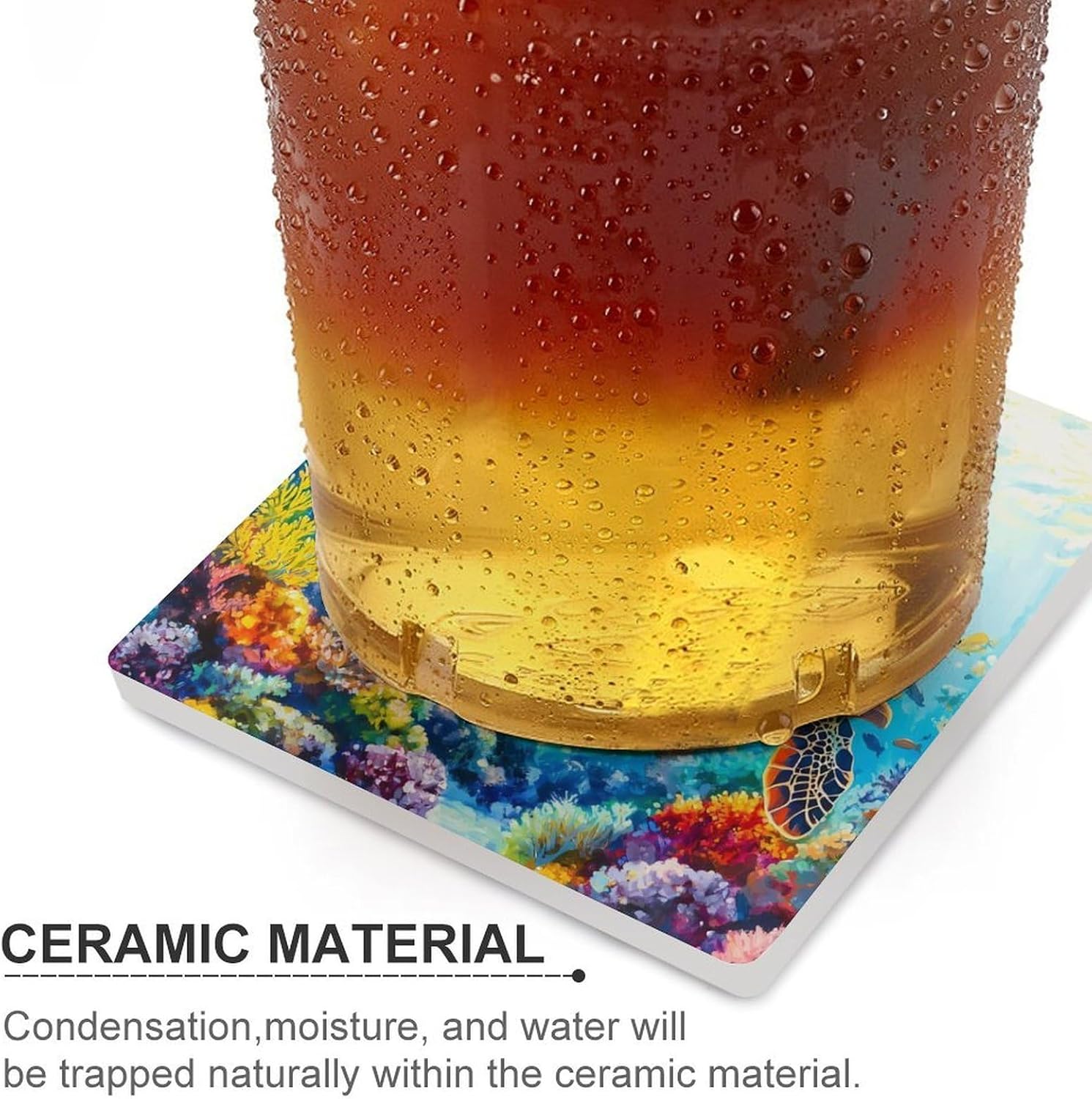 coasters,coasters set of 4,coasters set of 6,cute coasters with Funny Pattern Printed Ceramic Coasters with Cork Base Cup Holder Absorbent for Drinks Coasters Square Tabletop Protection Mat Decorative Cute Coffee Cup Beverage Coasters