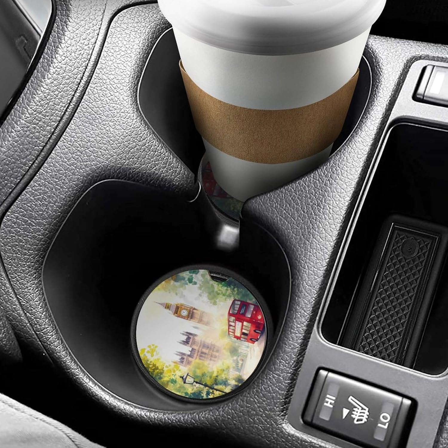 car coasters,coasters set of 6,coasters set of 4,car cup coasters,cup holder coasters for car Round Wood Car Cup Holder Coaster 2.56 Inches Cute Absorbent for Drinks Coaster Auto Interior Decorative Accessories with Funny Pattern Design