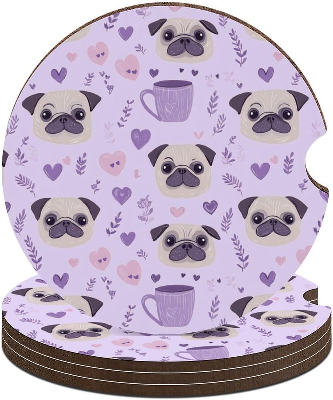car coasters,coasters set of 6,coasters set of 4,car cup coasters,cup holder coasters for car Round Wood Car Cup Holder Coaster 2.56 Inches Cute Absorbent for Drinks Coaster Auto Interior Decorative Accessories with Funny Pattern Design