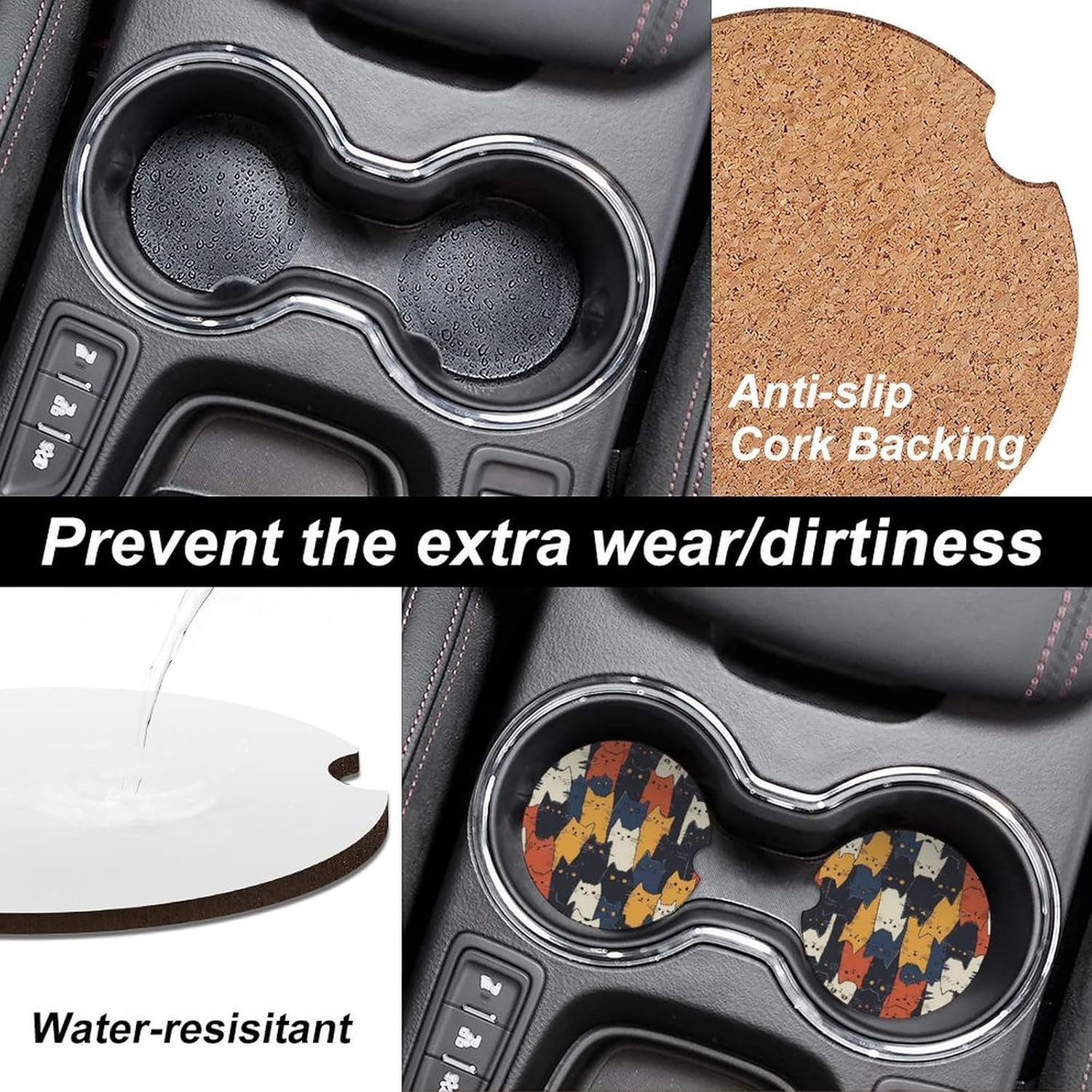 car coasters,coasters set of 6,coasters set of 4,car cup coasters,cup holder coasters for car Round Wood Car Cup Holder Coaster 2.56 Inches Cute Absorbent for Drinks Coaster Auto Interior Decorative Accessories with Funny Pattern Design
