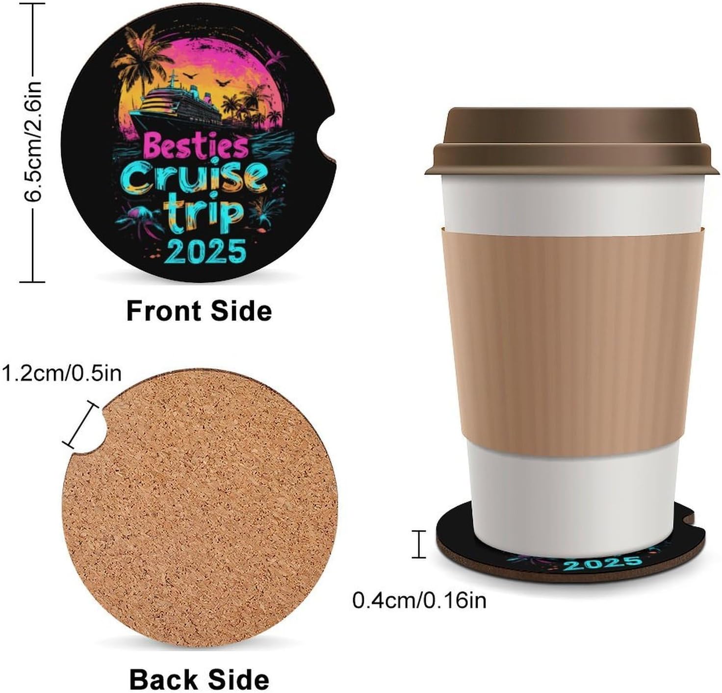 car coasters,coasters set of 6,coasters set of 4,car cup coasters,cup holder coasters for car Round Wood Car Cup Holder Coaster 2.56 Inches Cute Absorbent for Drinks Coaster Auto Interior Decorative Accessories with Funny Pattern Design