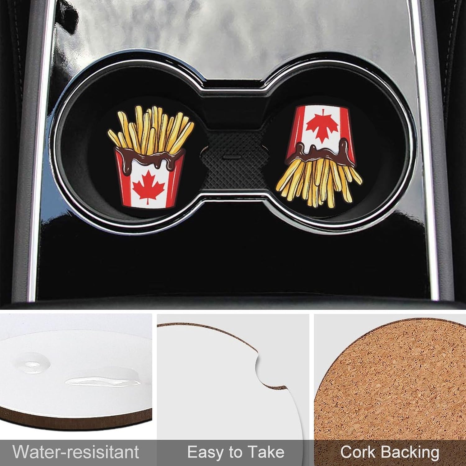 car coasters,coasters set of 6,coasters set of 4,car cup coasters,cup holder coasters for car Round Wood Car Cup Holder Coaster 2.56 Inches Cute Absorbent for Drinks Coaster Auto Interior Decorative Accessories with Funny Pattern Design
