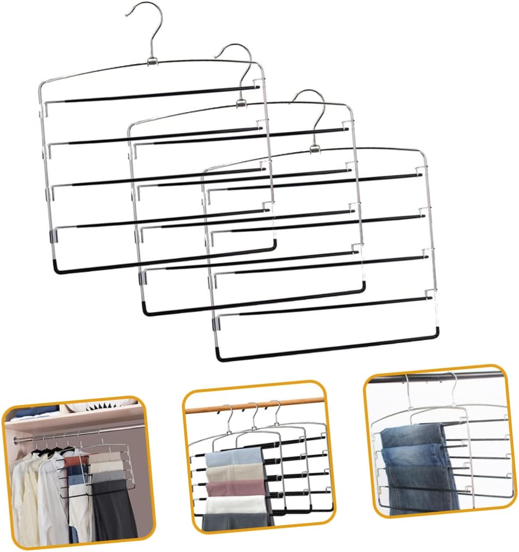 Package Include 3 x 5-tier Skirt Hangers Features - Material: High manganese steel trousers hangers. - Color: Black jeans hangers space saving. -Product Info:Pants rack - Size: 38.00X33.50X0.50cm/14.93X13.17X0.20inch hangers trousers. - Help you maximize your closet space while making it tidy and organized, can be used for home pants hanger space saving. - Fine workmanship and smooth surface and no burrs, safe and reliable, without hurting your hands pants organizer. - You can easily save time on dressing as you will be able to find your clothing faster and easier! hangers - Manufactured with metal material which is safe and excellent, and strong, for long time use pant hangers. - Easy to use anywhere, such as bathroom, bedroom, wardrobe, and will not easily fall off skirt hangers space saving.Goods Descriptionmulti trouser hanger Simple style, 5-layer design, the skirt hanger is useful and reliable for home use.hangers for jeans You can also save time on dressing as you will be able to find your clothes faster and easier!.trousers hanger Very beautiful and practical, it is indispensable household pants hanger.jeans hangers space saving Made of metal material, it's strong, and sturdy for hanging jeans, pants and skirt