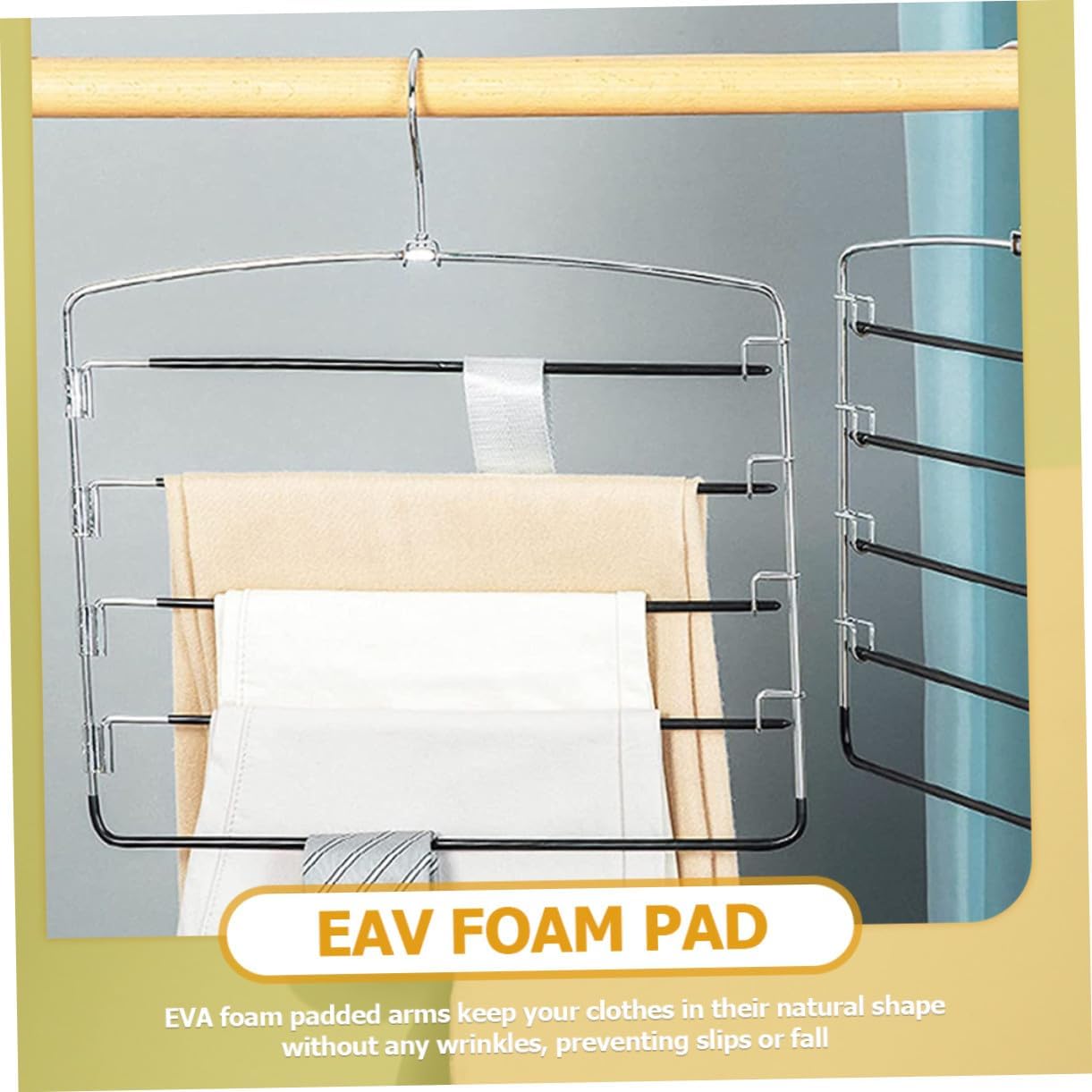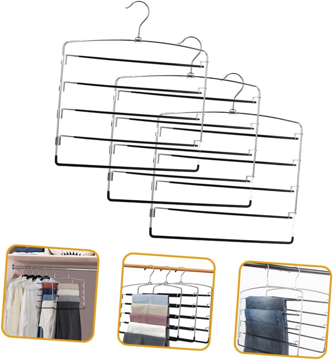 Package List 3 x 5-tier Skirt Hangers Features -Product Info:Pants rack - Color: Black multi-functional pants rack. - Size: 38.00X33.50X0.50cm/14.93X13.17X0.20inch pant hanger. - Material: High manganese steel multiple layers jeans hangers. - Fine workmanship and smooth surface and no burrs, safe and reliable, without hurting your hands skirt hangers space saving. - Help you maximize your closet space while making it tidy and organized, can be used for home hangers trousers. - Easy to use anywhere, such as bathroom, bedroom, wardrobe, and will not easily fall off hangers for trousers. - Manufactured with metal material which is safe and excellent, and strong, for long time use pant hangers. - You can easily save time on dressing as you will be able to find your clothing faster and easier! multifunctional hangerGoods Descriptionpant hanger Made of metal material, it's strong, and sturdy for hanging jeans, pants and skirt.hangers Simple style, 5-layer design, the skirt hanger is useful and reliable for home use.hangers for trousers You can also save time on dressing as you will be able to find your clothes faster and easier!.multi trouser hanger Very beautiful and practical, it is indispensable household pants hanger