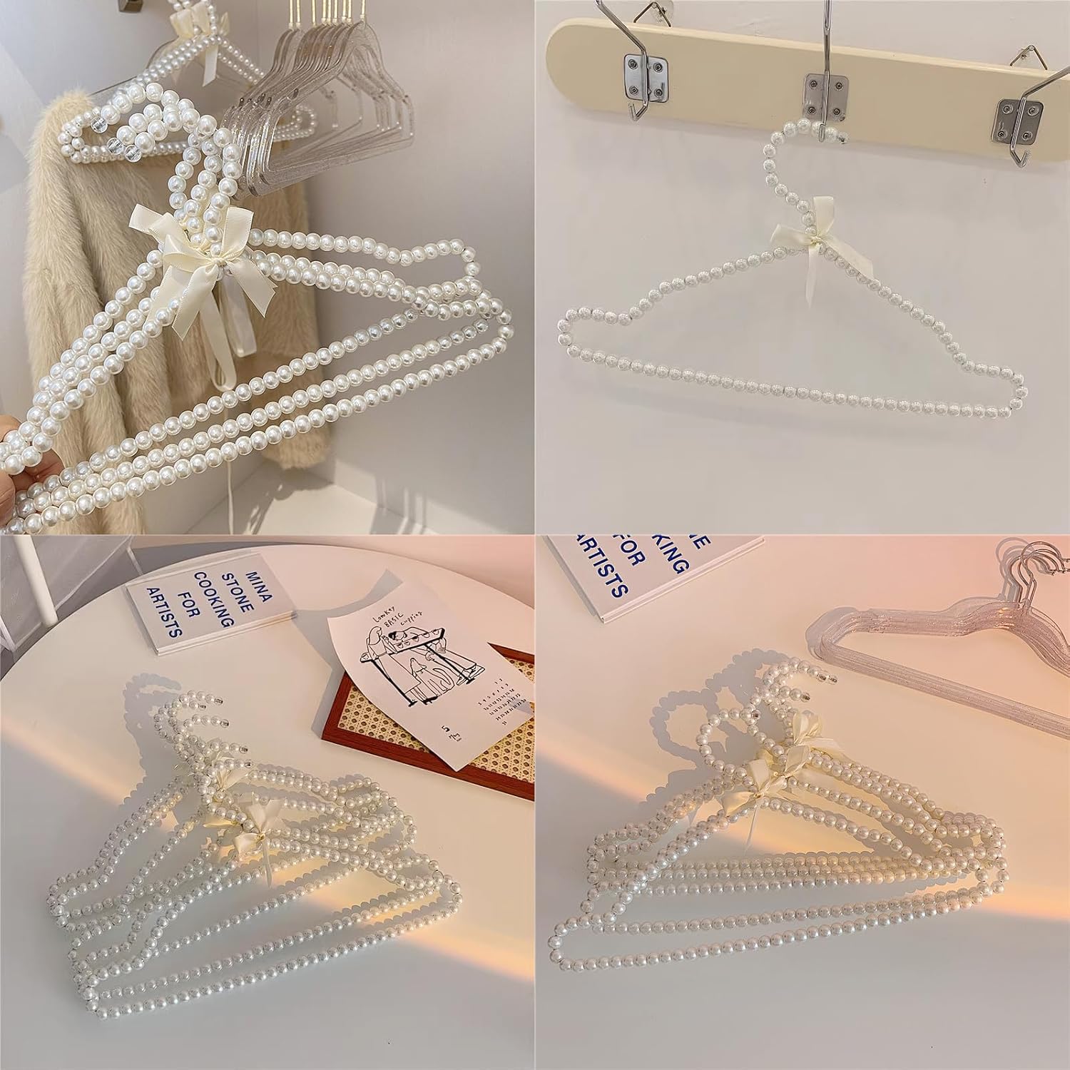 Features: - Product Description: Elegantly organize your wardrobe using a pearl hanger. These hangers provide you with fashion and durability. - They are made of plastic, providing a reliable solution to protect the shape and appearance of your precious clothing. Note: - Pearl Hangers Dimension: 15.75 inches (length) x 8.27 inches (height) Package Includes: - Package included: 8 x Pearl Hangers