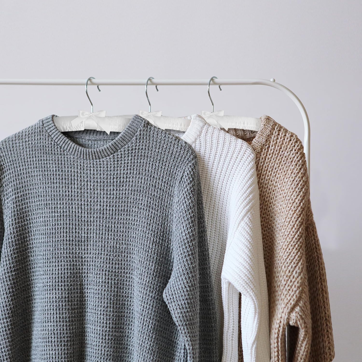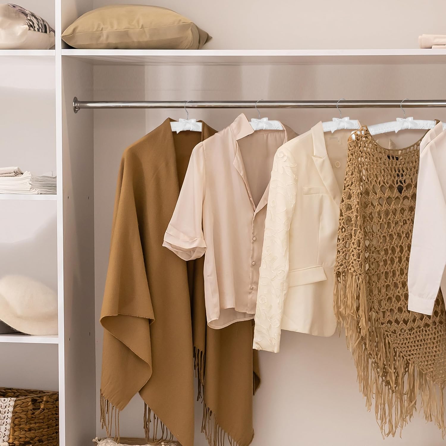 KEJJNYER 24 Pack Padded Hangers for Clothing, White Satin Hangers with Anti-Rust Hook, Cushioned Padded Hangers No Shoulder Bump for Sweaters, Coat,Dresses Feature: -Sturdy and durability, not easy to break -Won't scratch the shoulders or edges of clothes -Protect clothes from deformation and bulging -Rotatable hook design Saves time Specification: Material: Cloth Color: White Size: 15 Inch Package includes: 24 x Padded Hangers