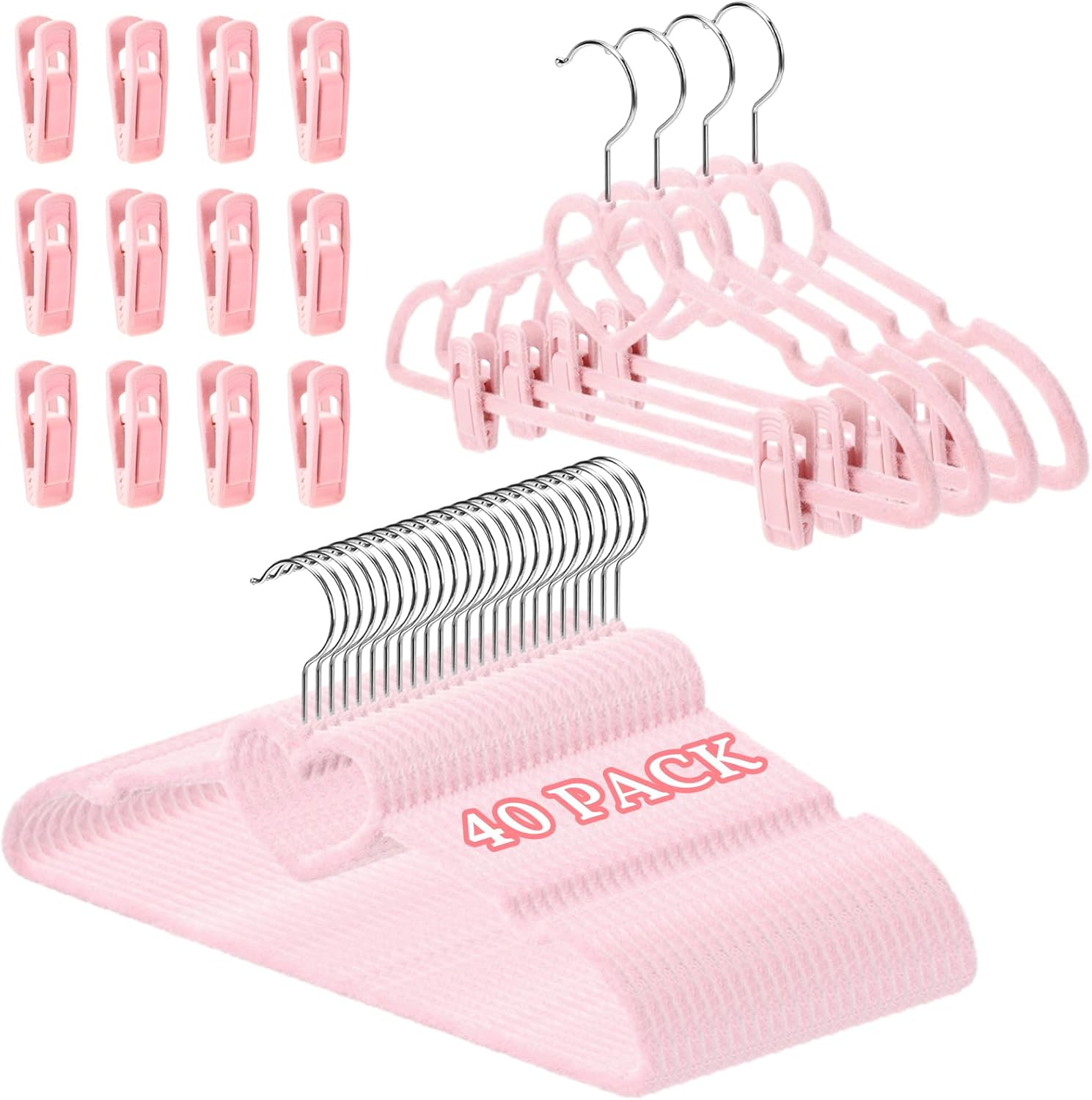 Features: These pink hangers with clips are stylish and appealing to women, showcasing their refined taste. The sufficient numbers also allow you to give some of the heart shaped clothes hangers as gifts to your family or friends, they are sure to feel your love and be moved by your care. Specifications: Material: aBS plastic and velvet Color: pink Size: Cute hangers: approx. 16 inches and about 0.2 inches in thickness Velvet hanger clips: approx. 1.77 inches Package includes: 40 x Velvet hangers 40 x Matching velvet finger clips Notes: Manual measurement, please allow slight errors on size. The color may exist a slight difference due to different screen displays