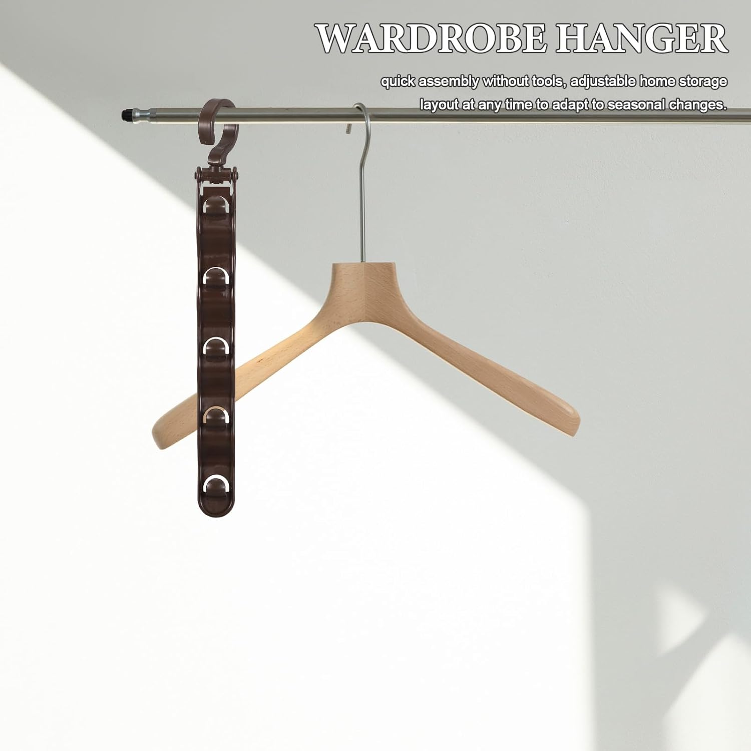 Description Keep your living space elegant and organized with these multi-layer space-saving clothes hangers, featuring a hanger space saver hook for enhanced closet storage. This space-saving organizer allows effortless installation—no tools needed—making it suitable for seasonal rotation and the efficient management of bedroom essentials for apartments. Features - Color: Coffee -Material:Plastic - Size: 36.00X4.70X2.00cm/14.15X1.85X0.79in -Double your storage capacity: hanger space saving hooks are specially made to expand closet organizing, allowing space saving closet organization for double the garment load in limited space -Convenient clothing sorting: the layered closet organizing hanger divides clothing types through a fivetier system, streamlining closet clothing hangers organizer routines every day -Protects your wardrobe: clothes hangers space saving hooks feature material, ensuring clothes hold their shape and stay neat thanks to the wardrobe hanger hook design -Universally fitting design: suitable for all closet sizes, space saving closet hangers work as closet accessory for homes, dorms, or offices looking for efficient storage solutions -Modern and decorative: spacesaving hangers for clothes introduce a sleek metal look, enhancing your bedroom essentials for apartments with fashionable, space efficient hangers