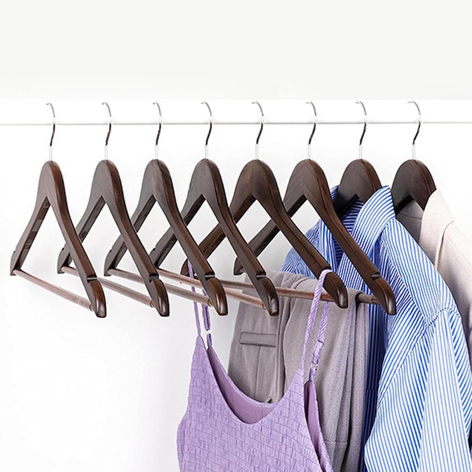 10pcs Sturdy Maple Wood Garment Hangers for Bedroom or Hotel 360 Degree Swivels Hook Hangers Practical Closet OrganizersFeatures:Crafted from wood, these hangers are designed for durability and strength, ensuring your clothes remain in perfect shape without sagging or deforming.The wood color aesthetically pleasant look, while the 360 degree Swivels hook enhances ease of use.Ideal for homeowners, boutiques owners, and consumers who value both functionality and styles in their storage Perfect for a variety of setting including bedroom closets, clothing display rooms, and hotel wardrobes, providing practical hanging option.Made from maple wood and iron, these hangers combine elegances with practicality, making it a essential addition to any organized space.Specifications:Component:Maple Wood+ironSize:Approx.44.5x1.2x23cm/17.52x0.47x9.06inchColor:2 OptionalWeight:1400gQuantity:10pcsPackage Includes:10pcs Clothes HangersNote:1.Please allow 1-2cm errors due to manual measurement, make sure that you donot mind before you order. 2.Due to the differences between different monitors, the picture may not reflect the actual color about the item.