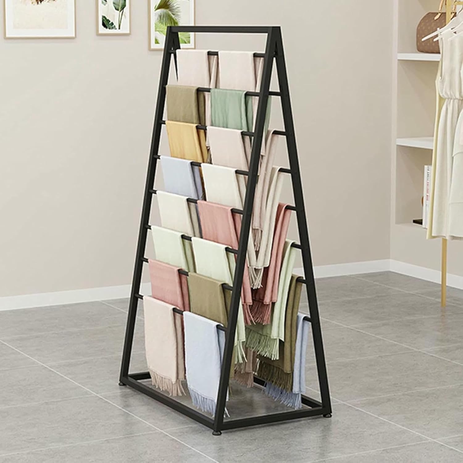 ✔ Scarf rack keeps scarves, belts, jewelry, and all other accessories organized and wrinkle-free. Very suitable for displaying your scarves, belts, suit pants, sheets, quilts and other retail items in the store.✔ Specification- Material: Metal Iron- Weight: 7 kg / 15 lbs- Number of hanging rods: 16- Weight Capacity: 20 kg / 45 lbs- Assembly required: Yes✔ Features:- Stable and durable frame, not easy to deform, super bearing capacity, can be used for a long time.- Layered storage design to keep your scarves, silk scarves and other accessories in order and not easy to fold.- Rustproof & non slip, smooth surface and polished hooks will not snagging the fabric.- Very suitable for retail stores, clothing stores, shopping malls or home use.- Multi-purpose storage rack, can be used as scarf rack, blanket rack, fabric display rack, clothing retail rack, free-standing pants rack, shawl display rack, belt and tie rack.✔ Package Includes:- 1 × Scarf Rack【After-sales Service】If you have any questions about our products or orders, please contact us by email, and we will be happy to assist you and respond to you within 24 hours.