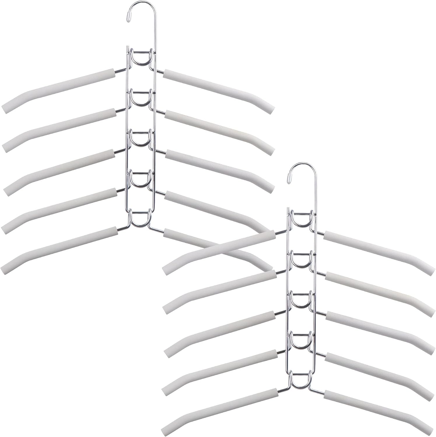 • * SPACE SAVING HANGER: Super space saver, Each hanger includes five separate detachable hangers, everyone can be assembled freely. Easy to hang and easy to remove.Each hanger can at least hang 5 coats or T-shirt.Work well with organizing solutions for small spaces or small apartment.Give more space in your closet, keep your closet and clothes cleanly and orderly.