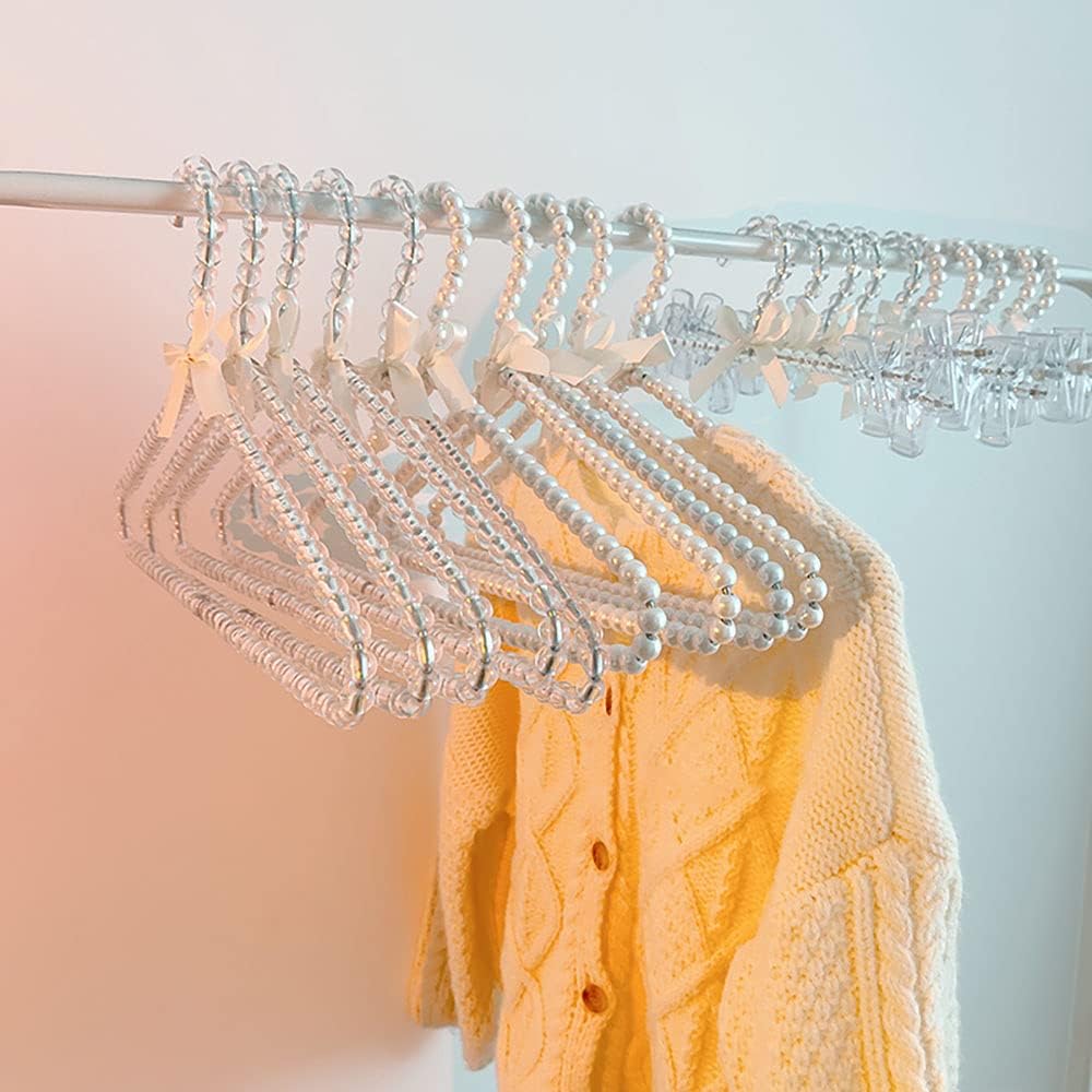 Feature: 1、ABS plastic pearl, smooth surface, beautiful luster and full paint film. The metal hook is made of stainless steel, anti-corrosion, rust-proof, windproof design, the hook is firm, and the clothes are not easy to slip off. 2、Faux pearl will never discolour your precious garments. The outside of the hanger is wrapped by smooth pearls, which will not damage your clothes. The arc-shaped design can protect the lines of the shoulders of the clothes and make your clothes not easily deformed. 3、Great decorative hangers, but also practical. Dress and skirt straps slot between any of the beads allowing clothing of all sizes to be held firmly in place. No garments will slip off hangers! 4、Suitable for use with dresses, skirts, jackets, pants, delicates & woollens.Can be used for hanging clothes, pants; besides, they are also great for hanging bags and other garments.Special metal hangers with luxury and top quality beads embellished. 5、Exquisite design and elegant appearance. Plastic beads will never discolour your precious garments.Ideal as a gift; to give your closet a fresh, luxurious look, or for an elegant boutique retail display.