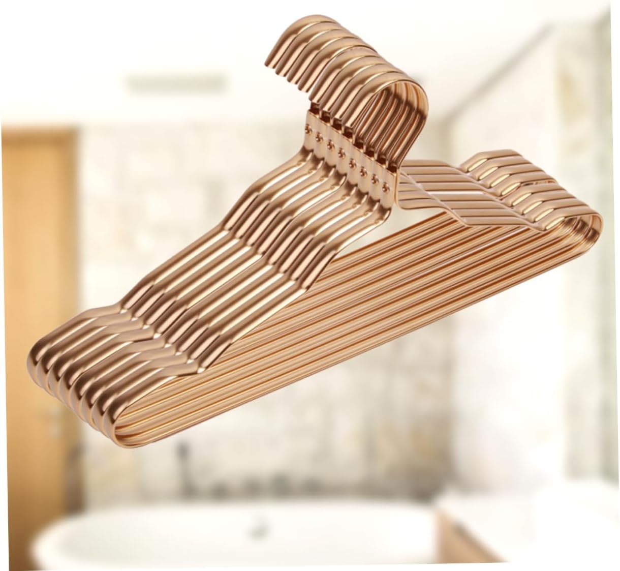 Package List 10 x cloth hanger Features - Size: Approx. 41 x 1.3 x 21.5cm Hanger Non-Slip. - Color: Golden Hanger Cloth. - Material: Aluminum alloy. - Warm Tip: Dear buyer, Due to lighting effect,monitor's brightness,manual measurement and etc, there could be some slight differences in the color and size between the photo and the actual item. sincerely hope that you can understand! Thank you! - Bright color design make it more chic and elegant, add luxury feeling to you decor Hanger. Simple Hanger - application in many occasions, homes, clothing shops, laundries, etc Clothes Hanger. - Classic shape design, and portable, for both indoor and outdoor use Alloy Hanger. - Well organize your closet space and keep your clothes winkle- and tidy. - Fine craft making, not easy to fade and deform.Goods InformationHanger Cloth Manufactured with aluminum alloy material, this clothes hanger allows you to secure any dress, keeping garment secure and off the floor.Hanger Non-Slip Bright color design make it more chic and elegant, add luxury feeling to you decor.Clothes Hanger and portable, for both indoor and outdoor use