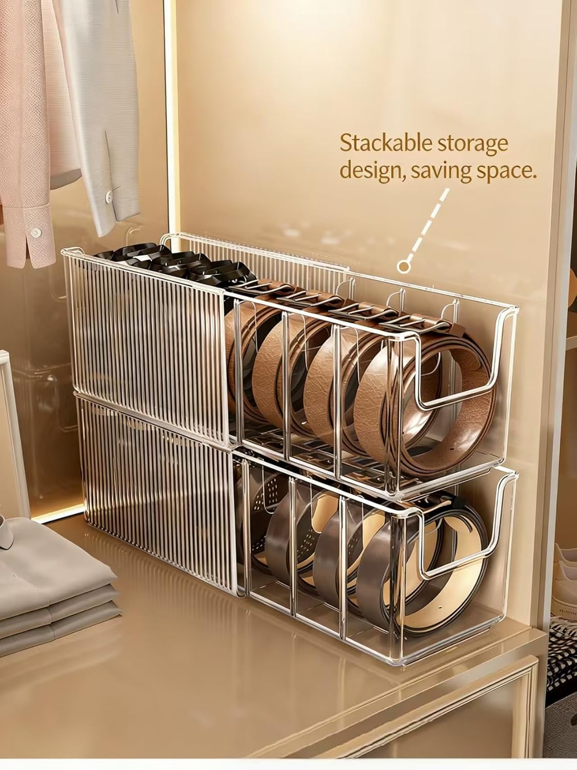 Tired of tangled belts, mismatched socks, and cluttered drawers? Our Extendable Storage Box is the ultimate solution for keeping your closet organized and your accessories easily accessible. Designed with versatility in mind, this multi-purpose organizer features adjustable compartments to perfectly fit ties, underwear, face masks, and more. The sturdy construction ensures your belts and socks stay neatly separated, while the compact design maximizes drawer or closet space. Experience the convenience of our premium organizer with its expandable length that adapts to your storage needs. the clear top allows for quick visual identification of contents. Each organizer is crafted with attention to detail and durable materials to withstand everyday use. Imagine opening your drawer to perfectly arranged belts, neatly folded ties, and organized socks - all within easy reach. Transform your closet chaos into orderly bliss with our Extendable Storage Box today.