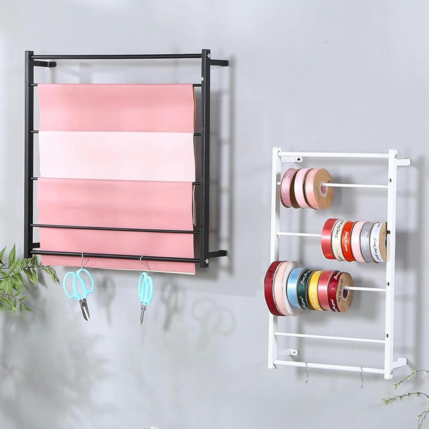 Wall Mounted Ribbon Rack, Multifunctional Display Organizer Ideal for Wrapping Paper Scarf Tie Belt Towel, Metal Ribbon Holder Organizer for Craft Room Florist BedroomSPECIFICATION:Material: iron metalColor: black, whiteSize:67×14×67cm (26.37×5.51×26.37 inches)40×14×67cm (15.74×5.51×26.37 inches)Includes: 1x wall-mounted ribbon standFEATURES:High-strength and durable structure: thickened metal pipe, smooth, no rust, no fading, large load-bearing, not easy to deform, long service life;Save floor space: installed on the wall does not take up any floor space, efficient and tidy organization, clear at a glance, easy to match;Flexible use: The crossbar is fixed th a slot, which can be easily removed or installed, and you can quickly restock or replace the ribbon as needed.;Multifunctional use: In boutique retail stores, it is used as a tie rack, belt rack, scarf rack, ribbon rack; or it is used to store towels, scarves, ties, and belts.;de range of scenes: wall-mounted racks are suitable for flower shops, scarf shops, fabric shops, boutiques, and clothing accessories stores.