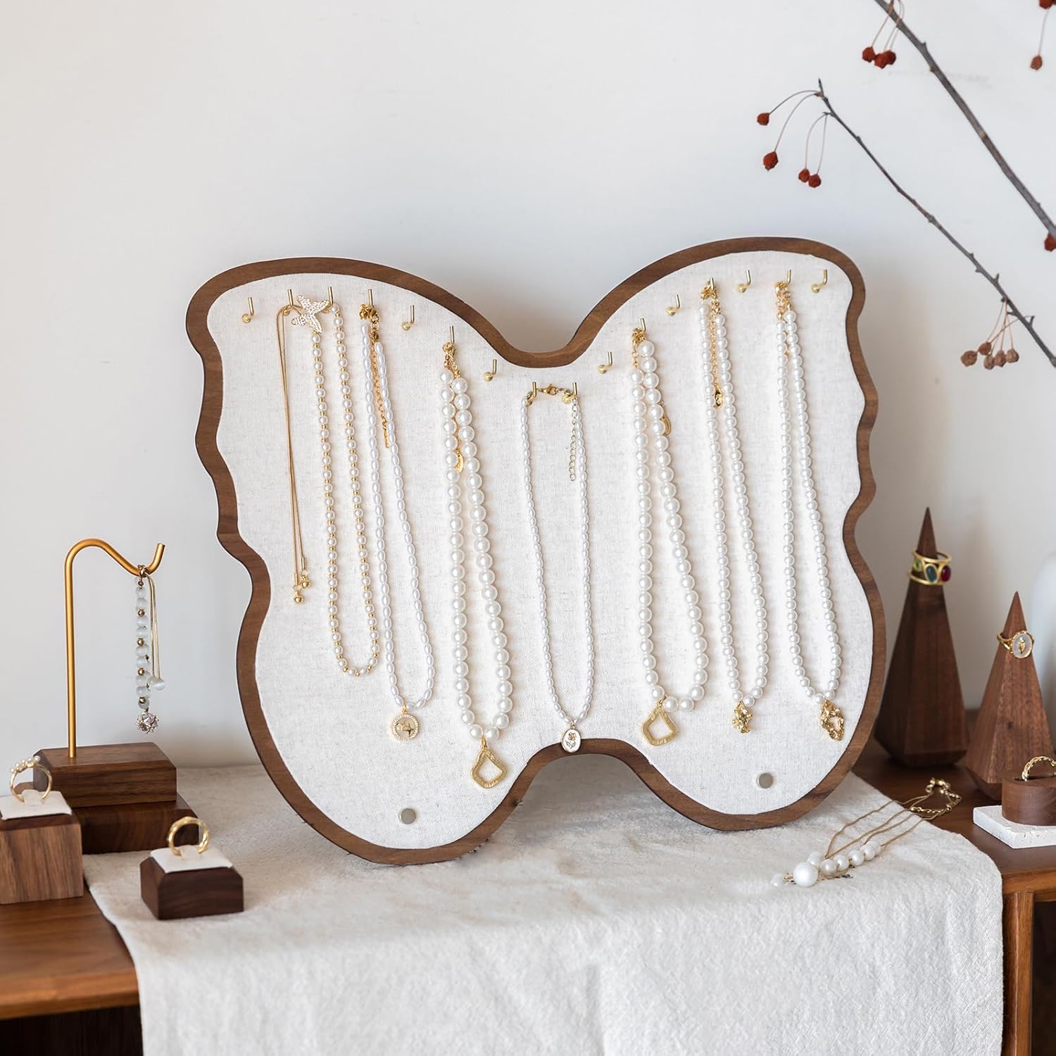 Stylish Butterfly Jewelry Storage Board Natural Wooden Hanging Display For Necklaces Bracelets Home OrganizationFeatures:Elegant Butterfly Jewelry Organizers with Handcrafted Wooden Structure and Linen Fabric for Necklace, Storage.Crafted from premium natural wood and linen fabric, this jewelry display board combines durability with user friendly materials, offering a stylish alternative to organizers.Designed for fashion conscious women, user friendly homeowners, and busy professionals seeking clutter release accessory management enhances bedroom vanity, dressing room wall, or compact apartments while showcasing jewelry as decorative art.Strategically spaced hooks and layered compartments ensures quick access to daily accessories, transforming chaotic collections into visually pleased vertical displays.Specifications:Materials: Wood + LinenSize:Approx. 35.5x30cm/13.98x11.81inchesPackage Includes:1Pc Butterfly Linen Jewelry Necklace Storage HangerNote:Please allow 1-2cm errors due to manual measurement.Due to the differences between different monitors, the picture may not reflect the actual color from the item.