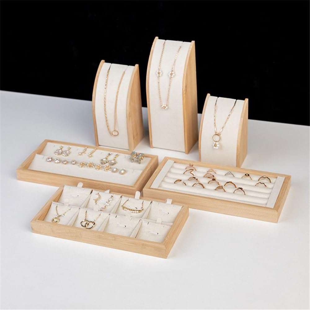 Multi-function selection, convenient and perfect to meet your needs and save space. Jewelry presentation shelf for jewelry sale display, suitable for home bedroom shopping malls Product Name: Jewelry Rack Material: wood + microfiber velvet Size: as the picture shows Packing list: 1 x jewellery rack. Notes: 1. Please confirm the size and color before purchasing. 2. This item has no other items except the jewelry stand in the photo.