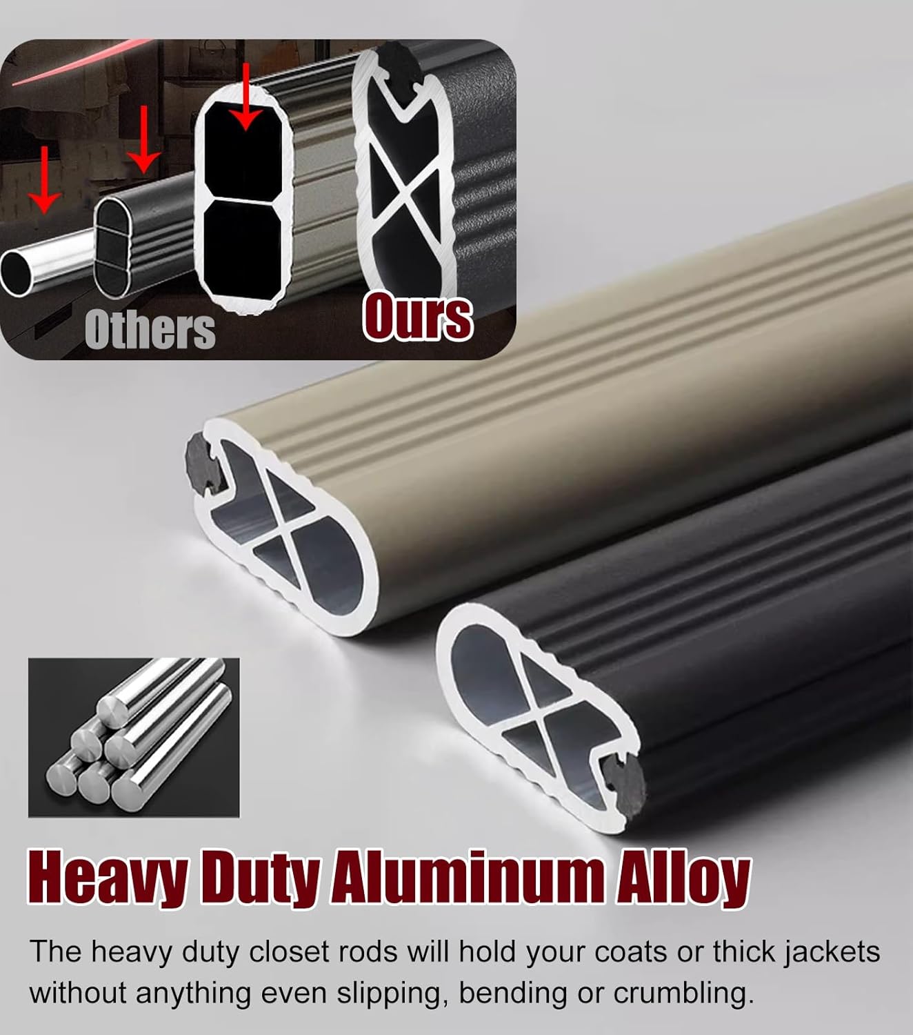 Closet Rod Top Mount Wardrobe Bars:Are you struggling to keep your wardrobe organized and clutter-free? Our premium closet clothes rod is designed to transform your storage space and enhance your home organization. Say goodbye to chaotic closets and hello to a more efficient way to hang and display your clothing. **Package Includes:** - 1 x Closet Rod - 2 x Flanges - All Necessary Accessories for Installation **Specifications:** - **Material:** Durable Aluminum Alloy - **Color Options:** Silver, Champagne, Black - **Length Range:** Adjustable from 40 cm to 160 cm (15 3/4 in - 63 in) - **Load Capacity:** Supports up to 50 kg (110 lbs) - **Customizable & Cuttable:** Yes, tailor it to your specific needs **Key Features:** - Constructed from thicker aluminum for superior load-bearing capacity, ensuring lasting durability without rust or deformation. - Easy installation with included flange sockets and screws, making setup a breeze. - Polished surface for a smooth finish that feels comfortable to the touch. - Clothes hangers glide effortlessly and quietly on the rod, minimizing noise while accessing your wardrobe. - Cut the rod to fit your unique closet dimensions for optimal space utilization. - Designed for efficient organization, allowing you to hang clothing easily and neatly. **Please Note:** - Minor dimension variations may occur due to manual measurements. - Colors may slightly differ from images due to lighting and screen settings. **Quality Assurance:** We are committed to providing excellent customer service. If you have any questions or concerns about our products, please do not hesitate to reach out to us. Experience the difference in closet organization with our versatile and sturdy closet clothes rod!