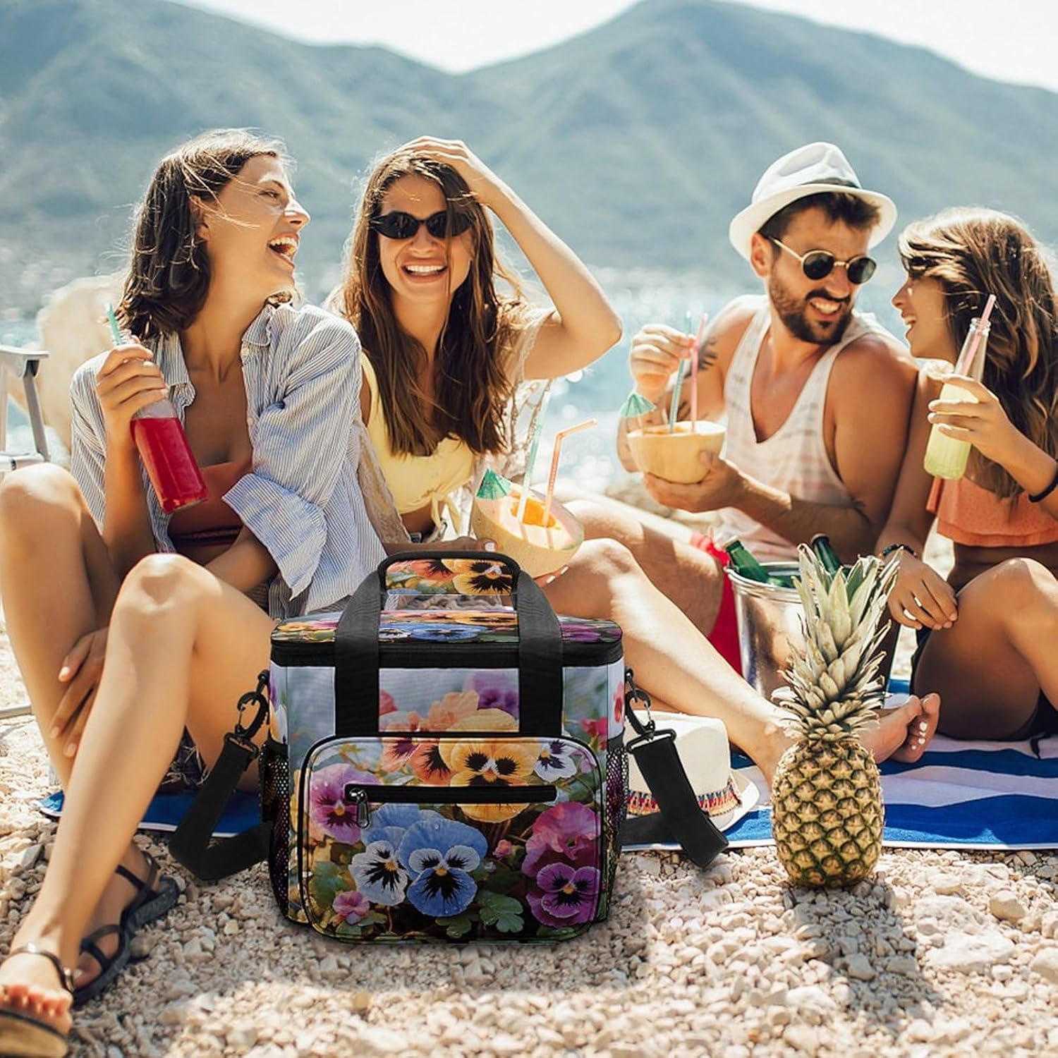 When you're looking for a reliable way to keep your food and drinks fresh while on the move, our Pansy Flowers insulated cooler tote is the perfect solution. Made from high-density Oxford cloth with an upgraded aluminum foil lining, it offers superior insulation that maintains the temperature of your items for hours. The leakproof design ensures no messy spills, and the sturdy construction means it can handle the rigors of daily use, whether you're commuting to work or heading out for a weekend camping trip.The 22.5L large capacity provides ample space for all your essentials, from sandwiches and salads to cans of soda and bottles of water. The comfortable 66cm straps make it easy to carry, and the compact vertical design doesn't take up unnecessary space in your car or backpack. Whether you're packing a meal for the office, preparing for a family picnic, or stocking up on groceries, this cooler bag has you covered.Forget about flimsy coolers that fall apart after a few uses or fail to keep your food fresh. Our reusable cooler tote combines practicality, durability and style in one package. Its neutral design works for everyone, and its versatility makes it a must-have accessory for anyone with an active lifestyle. Invest in a cooler bag that meets all your needs and simplifies your on-the-go eating experience. Lightweight Cooler Bags Oxford Cloth Cooler Bags Ice Packs Reinforced Handle Ice Chest Cooler Bag Tote Cooler Bag Versatile Cooler Bags Portable Insulated Cooling Everyday Cooler