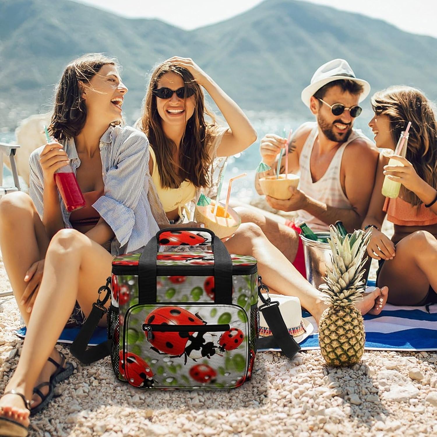When you're looking for a reliable way to keep your food and drinks fresh while on the move, our Ladybug insulated cooler tote is the perfect solution. Made from high-density Oxford cloth with an upgraded aluminum foil lining, it offers superior insulation that maintains the temperature of your items for hours. The leakproof design ensures no messy spills, and the sturdy construction means it can handle the rigors of daily use, whether you're commuting to work or heading out for a weekend camping trip.The 22.5L large capacity provides ample space for all your essentials, from sandwiches and salads to cans of soda and bottles of water. The comfortable 66cm straps make it easy to carry, and the compact vertical design doesn't take up unnecessary space in your car or backpack. Whether you're packing a meal for the office, preparing for a family picnic, or stocking up on groceries, this cooler bag has you covered.Forget about flimsy coolers that fall apart after a few uses or fail to keep your food fresh. Our reusable cooler tote combines practicality, durability and style in one package. Its neutral design works for everyone, and its versatility makes it a must-have accessory for anyone with an active lifestyle. Invest in a cooler bag that meets all your needs and simplifies your on-the-go eating experience. Lightweight Cooler Bags Oxford Cloth Cooler Bags Ice Packs Reinforced Handle Ice Chest Cooler Bag Tote Cooler Bag Versatile Cooler Bags Portable Insulated Cooling Everyday Cooler