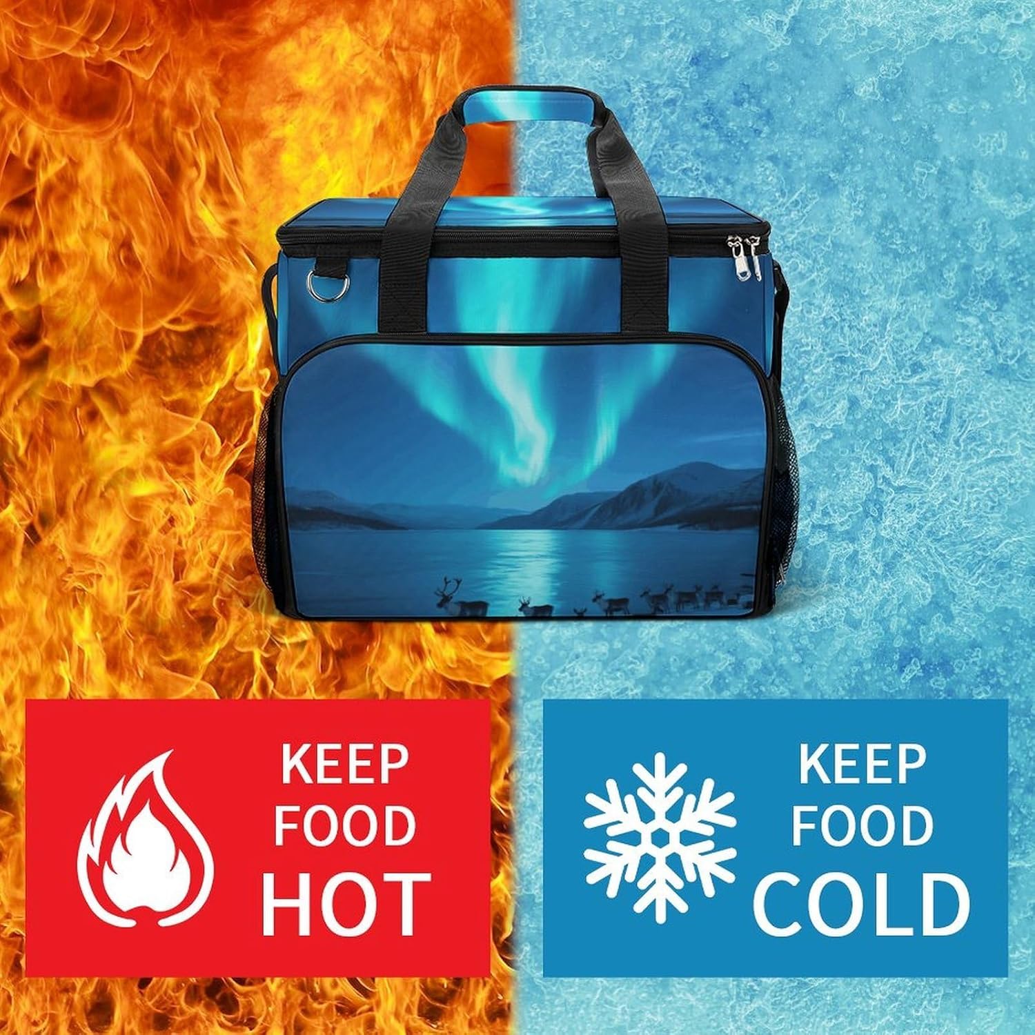 Take Your Meals Anywhere with Aurora Grocery BagsFood Container Carrier Oxford Fabric Picnic Bag Heat Retaining Food Bag Camping Cooler BBQ Accessories Cute Picnic Bag with Pockets Insulated Food Bag for Work Insulated Lunch Tote Bag Camping BagTemperature Control That WorksThe upgraded aluminum foil lining creates an effective thermal barrier. Your drinks stay refreshingly cold, and your hot dishes maintain their warmth for hours. No more lukewarm meals during outdoor outings.Thoughtful Storage DesignTwo side mesh pockets - Perfect for water bottles or umbrellasFront zippered pocket - Keeps keys, phone, or condiments organizedInternal mesh pocket - Stores utensils, napkins, and small essentialsMain compartment - Spacious enough for food containers and snacksBuilt for Daily AdventuresConstructed from high-density oxford fabric with reinforced stitching at stress points. The double zippers are sturdy and smooth-operating. Reinforced handles let you carry heavy loads with confidence.Carry Your WayHandles for quick grabbingStands upright for easy packing and accessPerfect For:Picnics in the parkBeach days and pool partiesCamping and hiking tripsOutdoor concerts and festivalsDaily work lunchesGym and fitness classesRoad trips and travelGrocery shoppingSpecifications:Dimensions: 15.4 x 11.8 x 11.8 inchesMaterial: High-density Oxford fabricLining: Aluminum foil (insulated)Closure: Sturdy double zippersPockets: 2 side mesh, 1 front zipper, 1 internal meshCare: Hand wash or machine wash, do not bleachNote: Food containers and utensils shown in images are not included.