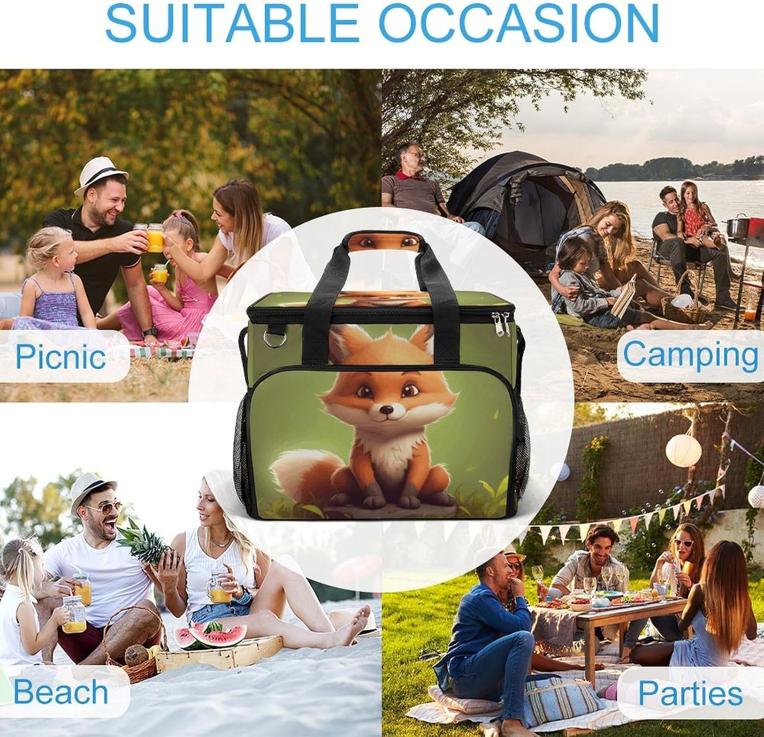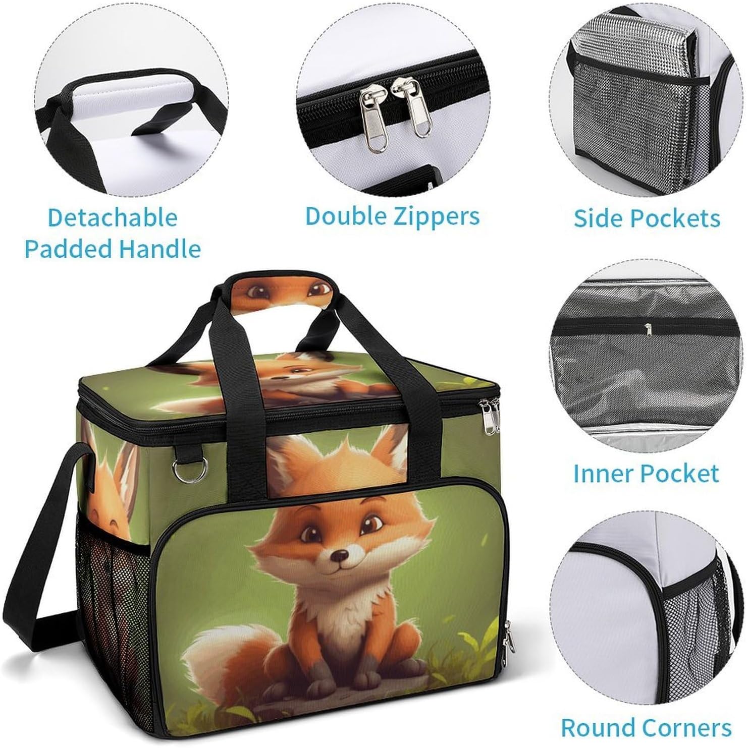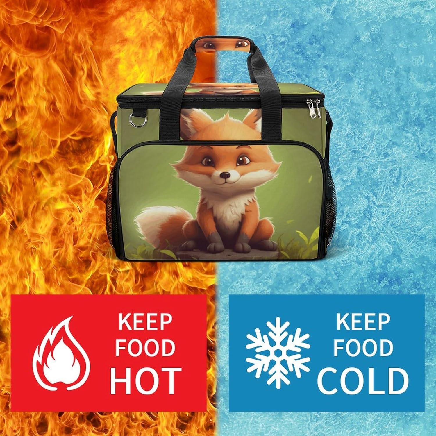Take Your Meals Anywhere with Cute Little Fox Grocery BagsFood Container Carrier Oxford Fabric Picnic Bag Heat Retaining Food Bag Camping Cooler BBQ Accessories Cute Picnic Bag with Pockets Insulated Food Bag for Work Insulated Lunch Tote Bag Camping BagTemperature Control That WorksThe upgraded aluminum foil lining creates an effective thermal barrier. Your drinks stay refreshingly cold, and your hot dishes maintain their warmth for hours. No more lukewarm meals during outdoor outings.Thoughtful Storage DesignTwo side mesh pockets - Perfect for water bottles or umbrellasFront zippered pocket - Keeps keys, phone, or condiments organizedInternal mesh pocket - Stores utensils, napkins, and small essentialsMain compartment - Spacious enough for food containers and snacksBuilt for Daily AdventuresConstructed from high-density oxford fabric with reinforced stitching at stress points. The double zippers are sturdy and smooth-operating. Reinforced handles let you carry heavy loads with confidence.Carry Your WayHandles for quick grabbingStands upright for easy packing and accessPerfect For:Picnics in the parkBeach days and pool partiesCamping and hiking tripsOutdoor concerts and festivalsDaily work lunchesGym and fitness classesRoad trips and travelGrocery shoppingSpecifications:Dimensions: 15.4 x 11.8 x 11.8 inchesMaterial: High-density Oxford fabricLining: Aluminum foil (insulated)Closure: Sturdy double zippersPockets: 2 side mesh, 1 front zipper, 1 internal meshCare: Hand wash or machine wash, do not bleachNote: Food containers and utensils shown in images are not included.