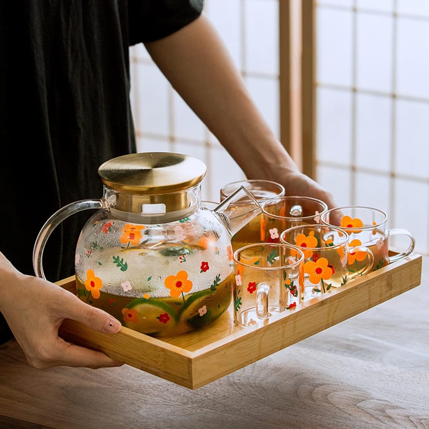 And of course, there is an added bonus that the carafe is a decorative element on the table. Name: Kettle Set Material: Glass 1 Please check the size before purchasing. Please allow about 0-1cm error due to manual measurement. 2. Product photos There are no products other than the product. Please allow little color difference due to different monitors. 4. The above data is for reference only. Size is measured by hand. Each variable may vary. Please refer to the actual item. Thank you. 5. If you find any problems with our products, please feel free to contact us by email, we will solve the problem as soon as possible. 6 We welcome sharing and feedback to provide better products and services.