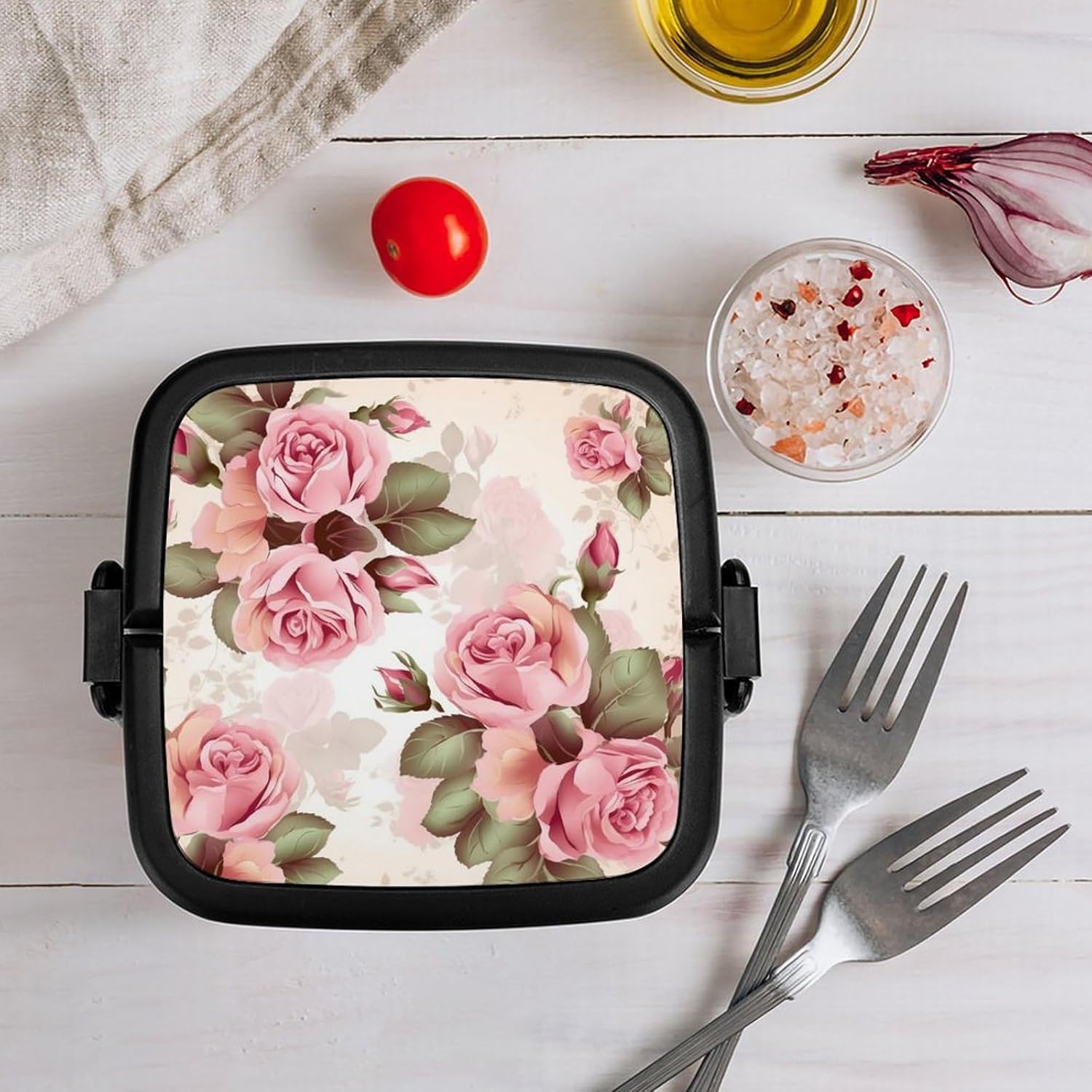 This box adult Bento Box is a must - have for those who are always on the go. Made from high - quality PP material, it's not only sturdy but also safe for storing foodThe double - layer design:lunch box large for women The tight - fitting seal ensures that no food leaks out, whether it's a juicy salad or a soupy dish. Plus, it keeps the food's smell inside, so you don't have to worry about any unpleasant odors in your bagThe clever divider design is another highlight:Rose Floral cooler lunch box It allows you to neatly separate different types of food. You can put your fresh vegetables in one section, fruits in another, and some snacks in the third. This way, each food item retains its original taste, giving you a wonderful dining experienceCarrying this bento box is a breeze:modern bento The snap - lock mechanism makes it easy to open and close, and the attached handle means you can carry it around effortlessly. Whether you're going to work, on a camping trip, or just out for a day of fun, this bento box is your perfect companionadult bento:Suitable for traveling, taking meals to work, taking fruits, camping and traveling, very light and portable. Washable and reusable. [Special Instructions] Note: This product cannot be put into the microwave