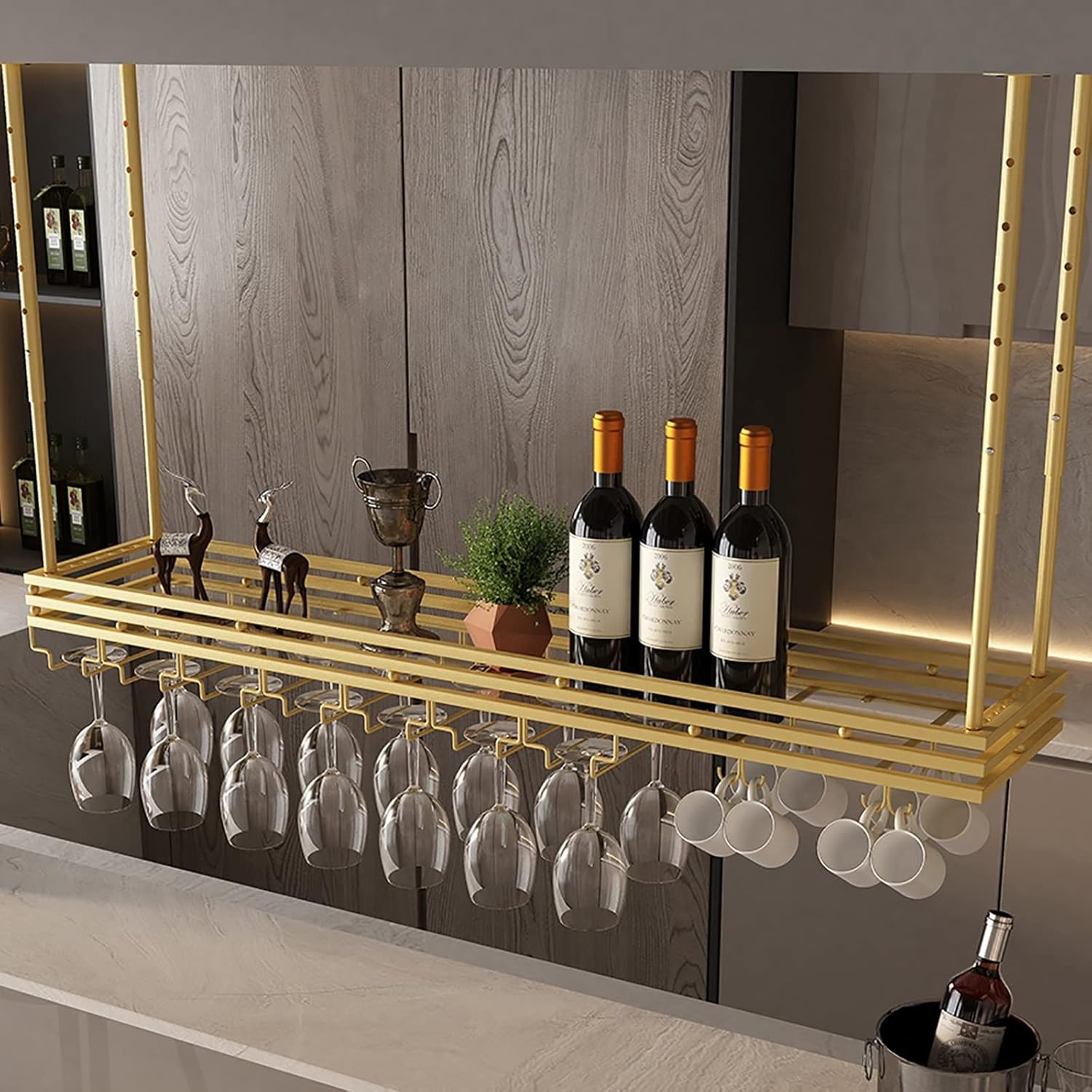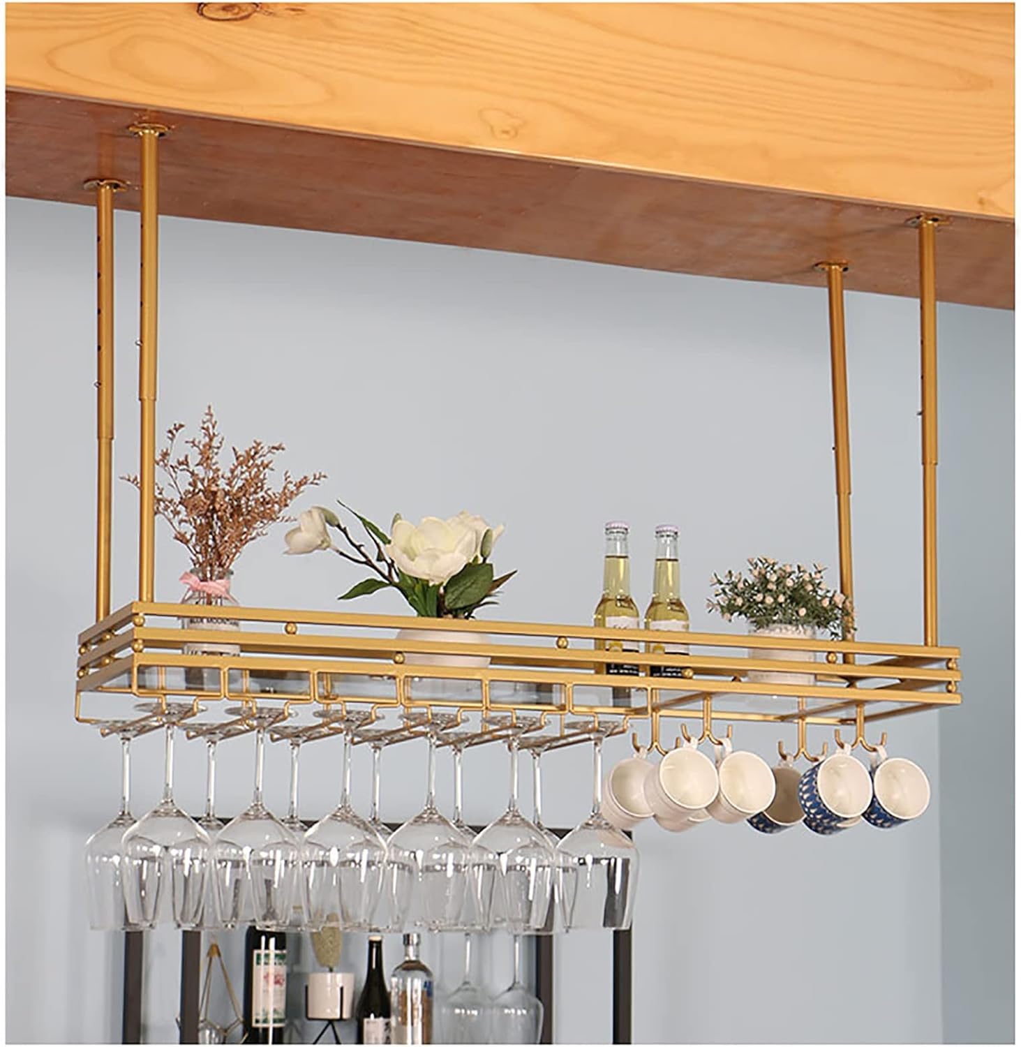 The ceiling Storage Rack is very suitable for decorating all kinds of messy rooms. It has large storage space and is very practical. It is a must-have decoration for every room.Wide Application-It can be used as a wall decoration in kitchens, restaurants, food storage rooms, wine cellars and bars. The ceiling wine rack is suitable as a birthday, anniversary, Christmas and New Year gift for family or friends.