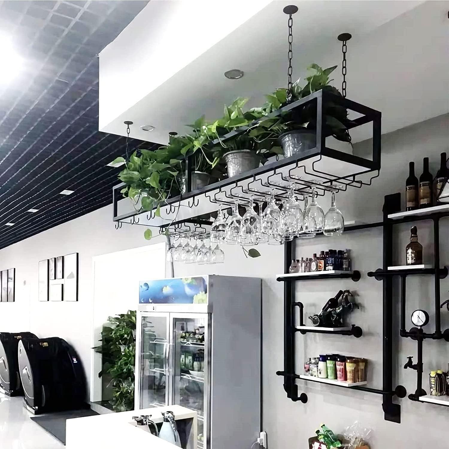 Transform your space with our versatile Hanging Wine Rack, which also serves as an elegant flower stand. Crafted fromiron and natural pine, this stylish ceiling-mounted wine rack not only provides a practical storage solution but also enhances your home decor. Designed for wine and plant enthusiasts alike, this rack is perfect for showcasing your favorite bottles or vibrant blooms. Available in multiple sizes \u2013 60 x 25 x 22 cm, 80 x 25 x 22 cm, 100 x 25 x 22 cm, and 120 x 25 x 22 cm \u2013 it's easy to find the ideal rack for your kitchen, dining area, or living room. The sturdy construction supports a maximum weight of 100 kg, ensuring a secure display for both bottles and plants. Installation is straightforward with the included stainless steel components, screws, and accessories, making it adaptable to any space. Its minimalist design complements both modern and traditional interiors, allowing you to express your personal style while keeping everything nized. Please note that this offer includes only the Hanging Wine Rack; decorative items shown are not included. Due to lighting and screen variations, the actual product may differ slightly from the image. Elevate your home with this stylish and functional piece, creating an inviting atmosphere for guests and a stunning display for your treasured items.