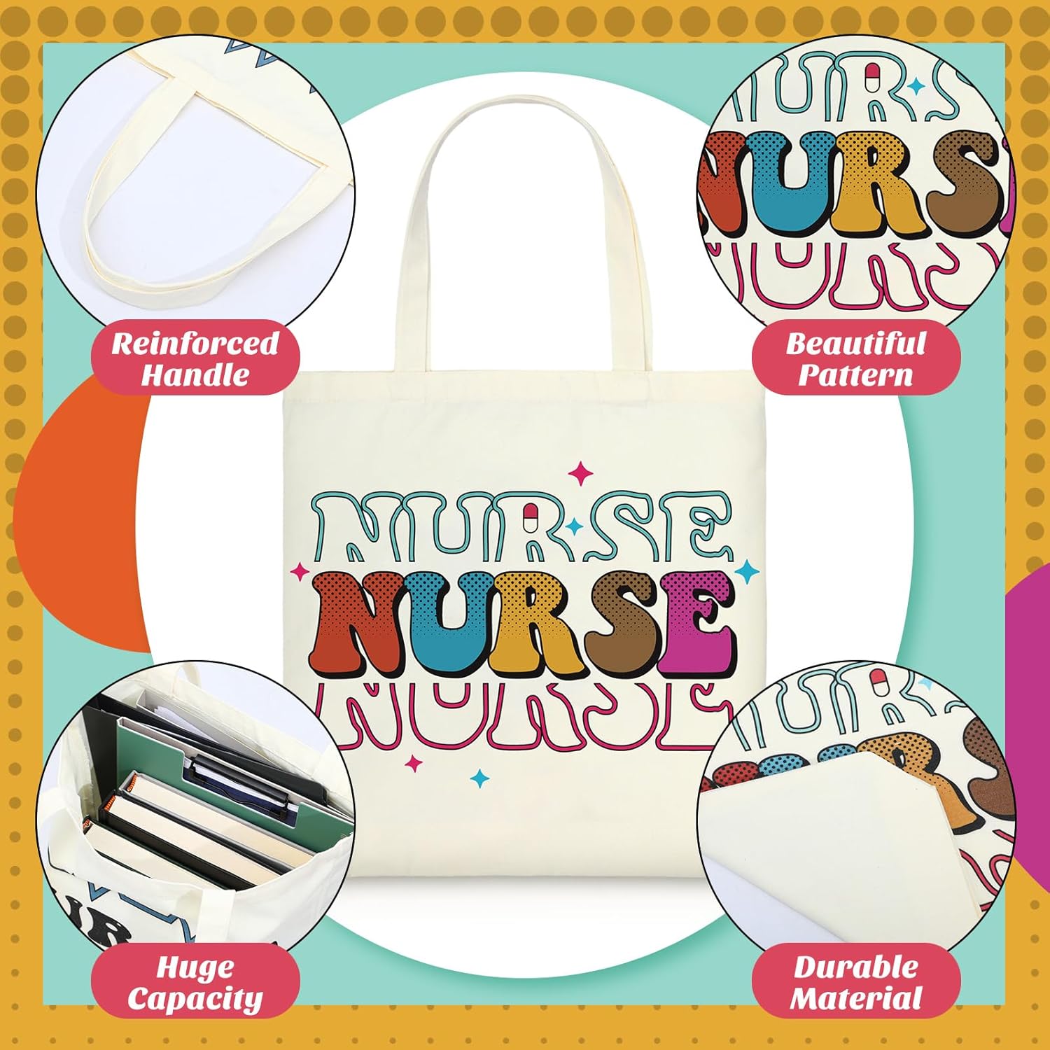 Features: These nurse shopping shoulder bags are not only versatile but also durable. Made from quality canvas material, they are built to withstand the daily demands of a nurse's busy schedule. The sturdy handles ensure comfortable carrying, while the spacious interior provides ample room for all essentials. Whether it's medical supplies, books, or personal belongings, these bags have got you covered. Our tote bag for nurse is an ideal gift for Nurses Week, birthdays, holidays, or just to express gratitude to the nurses who go above and beyond every day. These excellent nurse gifts bags are specially designed to make nurses' lives easier, providing a convenient and stylish way to carry all their belongings. Nurses can use these bags for work, school, gym, or even as an everyday purse. Specifications: Material: canvas Size: about 15.75 x 14.96 x 3.54 inches/ 40 x 38 x 9 cm Package includes: 20 x Nurse appreciation gift bags Notes: Manual measurement, please allow slight errors on size. The color may exist a slight difference due to different screen displays.
