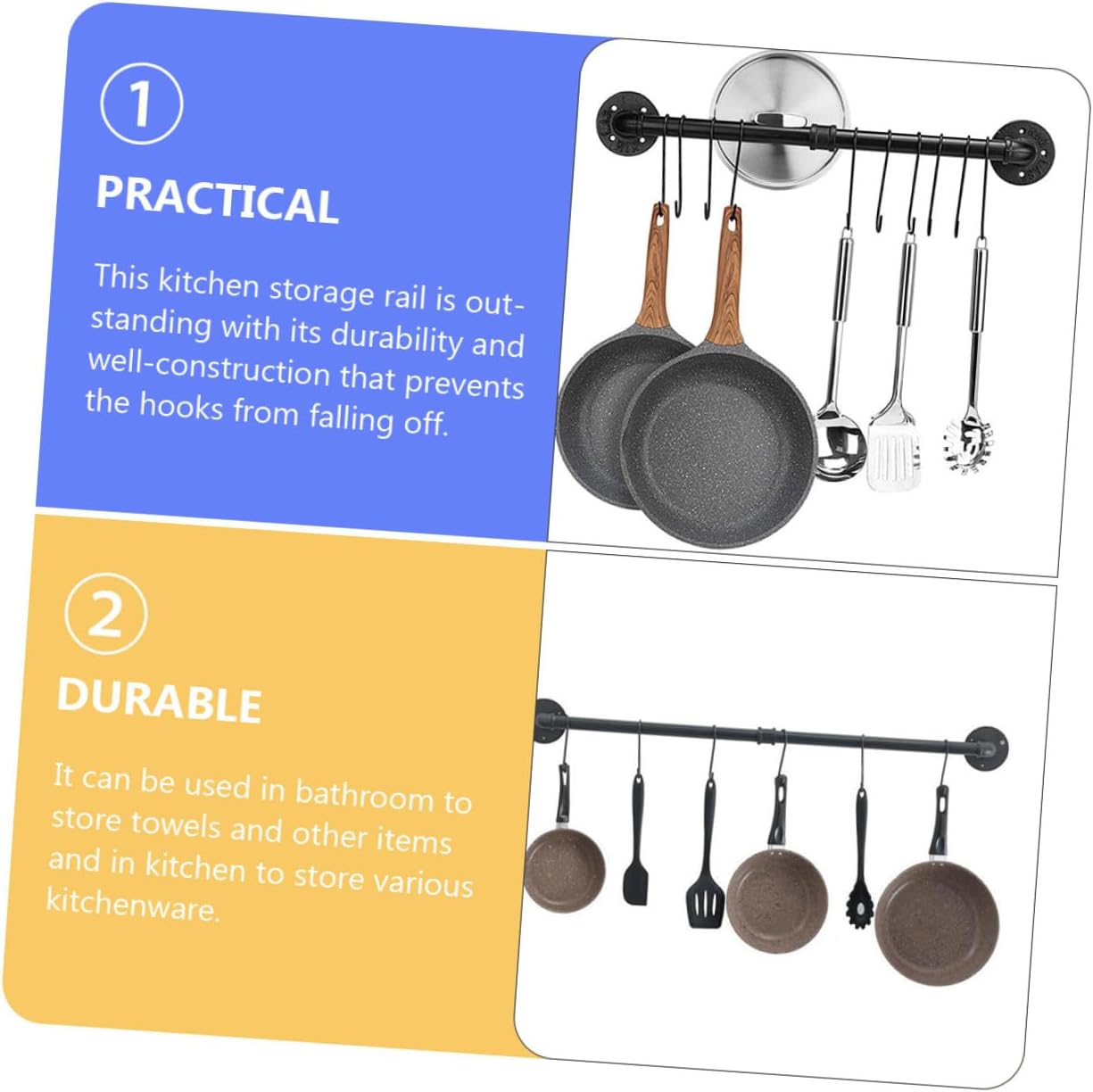 Package List 2 x rods 2 1 x connector 2 x bases 8 x screws 8 x expansion tubes 6 x hooks Characteristics - Size: 60.00X13.00X5.00cm/23.58X5.11X1.97 inch. - Color: Black. -Product Info:Pot lid stand - Material: Iron. - Hooks that are nailed into the wall are more practical and have greater bearing capacity than self-adhesive ones kitchen hooks for pans. - Fit for frying pan, camping cookie, skillet, cooking utensils, farmhouse pots and pans, etc wall mounted pan holder. - and fine workmanship make this storage rack and can be used for a long time. - It can not only be hung in the kitchen as a pot and pans organizer and a towel rack in the bathroom.It can also be installed on the balcony as a plant shelf with hanging bar utensil rack with hooks. - Keep your utensils where you can easily reach and cook like a professional chef kitchen wall mount utensil rack.Goods Informationkitchen wall mount utensil rack This is a storage rack, which is made of iron , and can be used for a long time.pans organizer rack The storage rack with hooks can store various items, such pot, pot lid, spatula, washing cloths and etc.pot storage rack Suitable for kitchen, bathroom, bedroom and other places you need
