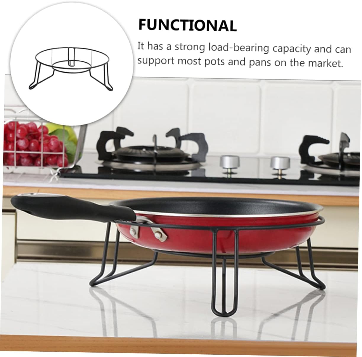 Package Include 1 x Pot Rack Characteristics - Color: Black Round Pot Rack. - Size: 26.50X26.50X10.00cm/10.41X10.41X3.93inch Steam Pot Stand. - Material: Metal Rack. - It has functions of heat- , and anti- , which had a Kitchen Accessories. - It has a strong load-bearing capacity and can support pots and pans on the market Metal Pot Stand. - The bottom adopts arc-shaped design, which has anti-slip and abrasion resistance, and will not scratch the desktop Steam Holder. - It adopts a hollow design, which is convenient for ventilation and reduces heat accumulation at the bottom of the pot, so that the bottom of the pot can be cooled quickly Kitchen Pot Holder. - The three-legged design is used, the distance between the three sides is equal, is even, and it is to dump Pot Holder.Goods InformationSteam Stand It can keep the high-temperature pot from the counter and keep your kitchen counter beautiful at all times.Steam Rack Is your kitchen counter often cracked by the of the pot? Is your beautiful cabinet table often scratched by the bottom of the pot? Have you encountered these problems in the kitchen? Have you found a ? Why not take a look at our tripod made of metal
