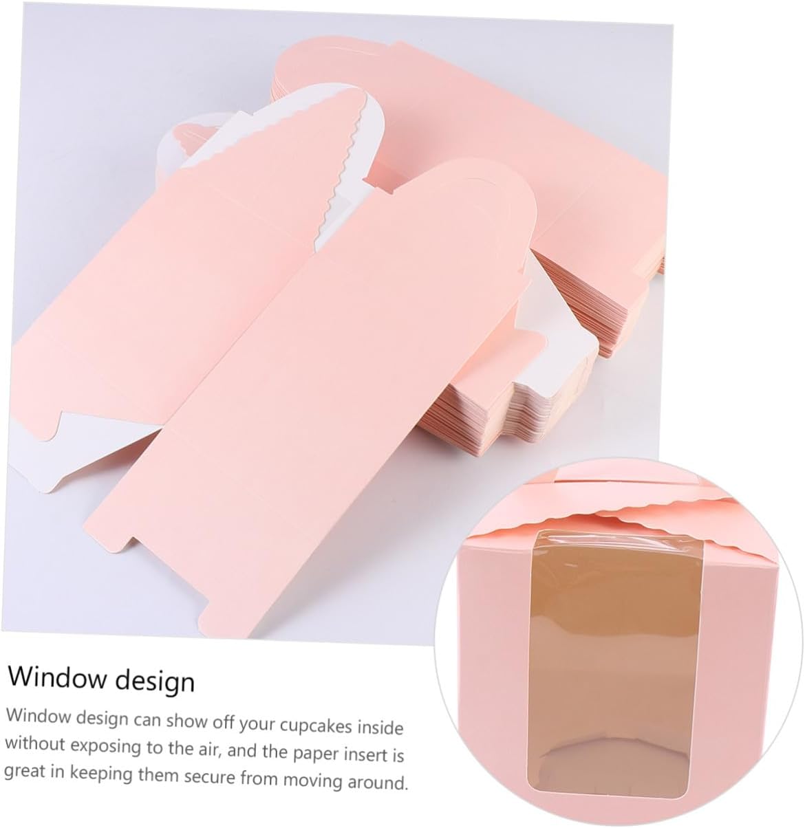 Package Include 50 x cake box Characteristics - Color: Pink. - Material: White paper. -Product Info:Cupcake box - Perfect size for pies, cupcakes, doughnuts, cookies, chocolate, candy. - environmental material, and reliable, . - Enough surface to make your loving cupcake container. - Unique design makes it more adorable and attractive cupcake boxes. - If not needed, it can be disassembled and flattened for easy storage cake boxes.Goods Descriptionmuffin containers They can be used for wrapping a variety of cakes.cupcake containers Creative shape design, more chic and attractive.Backing Cake Case Wrapping these cake box, the cake are more decent.party cake holder You can decorate your with them.baking boxes These delicate cake boxes are made of , and