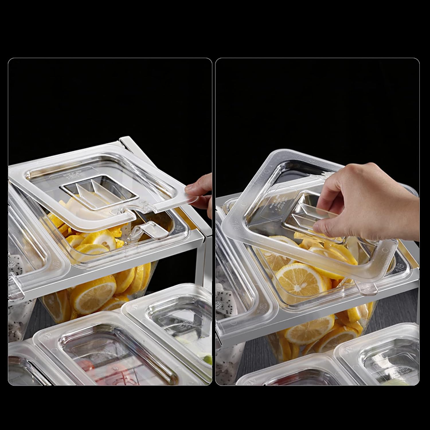Specification:Item Type: Seasoning BoxMaterial: Stainless Steel+AcrylicColor: TransparentSeasoning Box Size:A: Cover: 11*17.5cm Box: 11*17.5*14cmB: Cover: 16*17.5cm Box: 11*17.5*15cmRack Size: Approx. 35-60x35x27.5cmSpoon Size: 20*5cmApplicable Temperature: -40 ℃ —100 ℃Package List:8 x Seasoning Box8 x Lid8 x Spoons1 x RackNote:1. Please allow 0-1 inch error due to manual measurement.