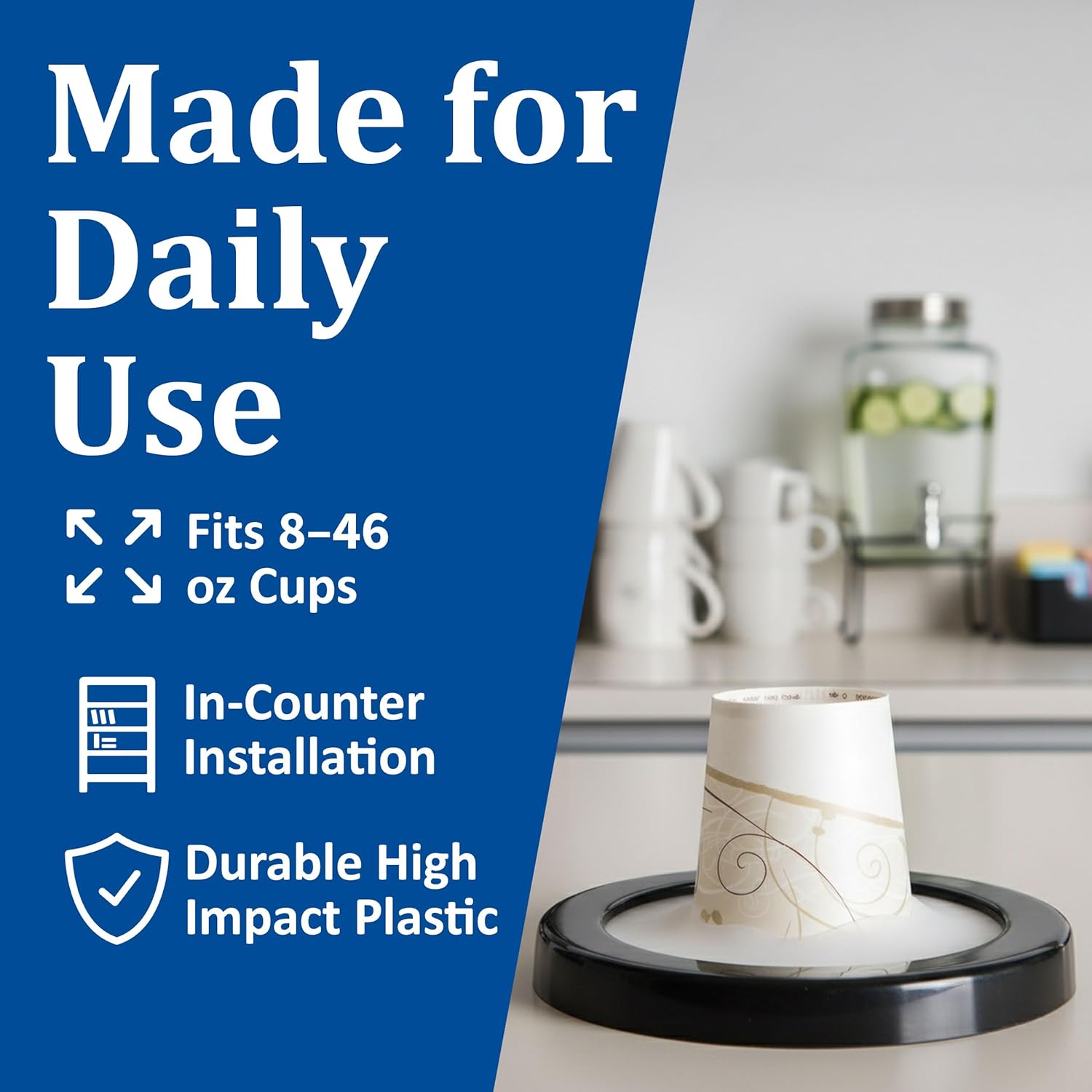 Experience Cup Dispensing Made Simple with the San Jamar One-Size-Fits-All Ez-Fit In-Counter Cup Dispenser! Tired of the hassle of maintaining multiple cup dispensers for your restaurant, dining hall, or fast-food establishment? Say hello to your cup dispensing savior, the San Jamar One-Size-Fits-All Ez-Fit In-Counter Cup Dispenser! This sleek and efficient dispenser in classic black not only looks the part but also revolutionizes how you manage your beverage service. Gasket Pack for Ultimate Versatility: Embrace the freedom of dispensing a wide range of cup sizes without the headache of constant adjustments. Our Ez-Fit In-Counter Cup Dispenser comes equipped with an interchangeable gasket pack, ensuring a perfect fit for cups with diameters ranging from 2.875" to 4.75". Counter space is prime real estate in the food service industry, and our in-counter cup dispenser understands the value of every square inch. This space-saving design will let you breathe easier in your busy work environment, keeping your service area efficient and uncluttered. Compatible with All Cup Materials: Whether you're serving up steaming hot coffee in paper cups, ice-cold beverages in plastic cups, or scrumptious soups in foam cups, this dispenser is your trusty sidekick. Versatile to the core, it dispenses paper, plastic, and foam cups with ease, giving your customers the variety they crave. Wide Range of Cup Sizes: Ready to impress your patrons with a range of drink sizes? Our dispenser doesn't discriminate. It's built to handle cup sizes from 8 to 46 ounces, with diameters spanning from 2.875" to 4.75". Seamless Cup Size Adjustments: As your menu evolves, your cup sizes may change. No worries! This in-counter cup dispenser is designed for easy adjustments, ensuring that you can adapt without the hassle of buying new dispensers.