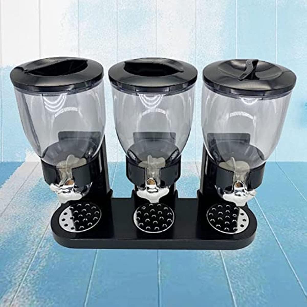Color:black Material: ABS Dimensions: 44 x 16 x 35 cm Package contents: 1 x cereal dispenser Only the contents of the above package, other products are not included. Note: Shooting different light and screen can cause the 'item in photo' color a little different from the real one. The allowed measurement error is less than or more than 1-3 cm.