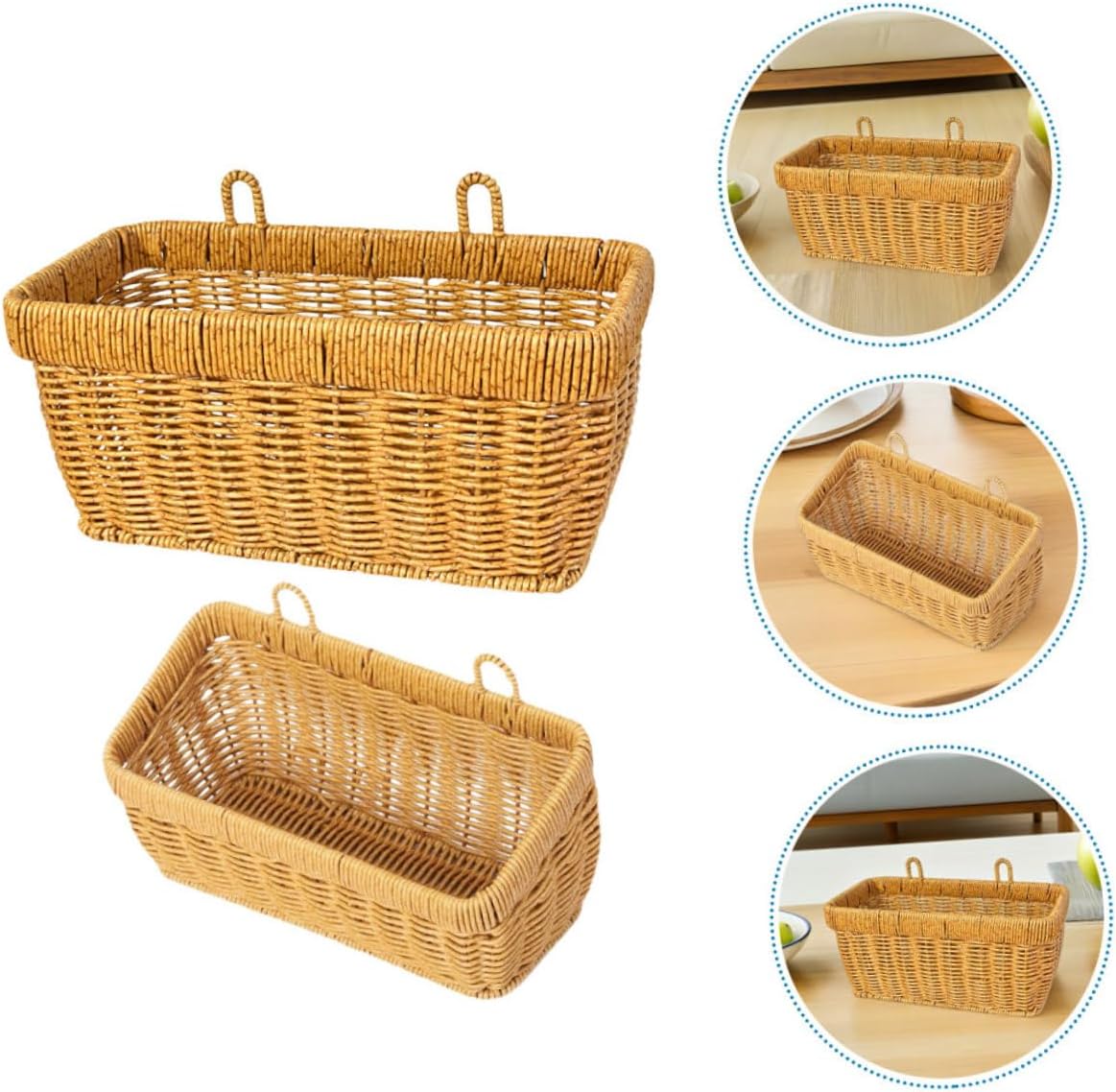 DescriptionThis hand-woven hanging basket set is crafted with imitation rattan material, providing a and stylish solution for organizing your kitchen essentials. Designed for wall mounting, it provides a space-saving way to store items like ginger, garlic, onions, eggs, and fruits, keeping your kitchen neat and accessible.Features-Color:Chocolate-Material:Plastic-Size:28.00X16.00X13.00cm/11.00X6.29X5.11in-Size:21.50X12.50X8.00cm/8.45X4.91X3.14in-Hanging produce basket: optimizes wall space to free up countertops, creating and more organized kitchen environment. perfect for compact kitchens or maximizing storage efficiency-Elegant faux rattan craftsmanship: features a handwoven faux rattan design that adds a touch of sophistication to your kitchen while blending seamlessly with various decor styles-Versatile storage woven basket: ideal for storing garlic, ginger, onions, eggs, fruits, and more, allowing for easy categorization and quick access to kitchen essentials- and sturdy material: built with strong materials that resist deformation, ensuring use and reliable performance even with heavier items-Easy maintenance: smooth surface allows for effortless cleaning; simply wipe with a damp cloth and maintain a clean storage solution