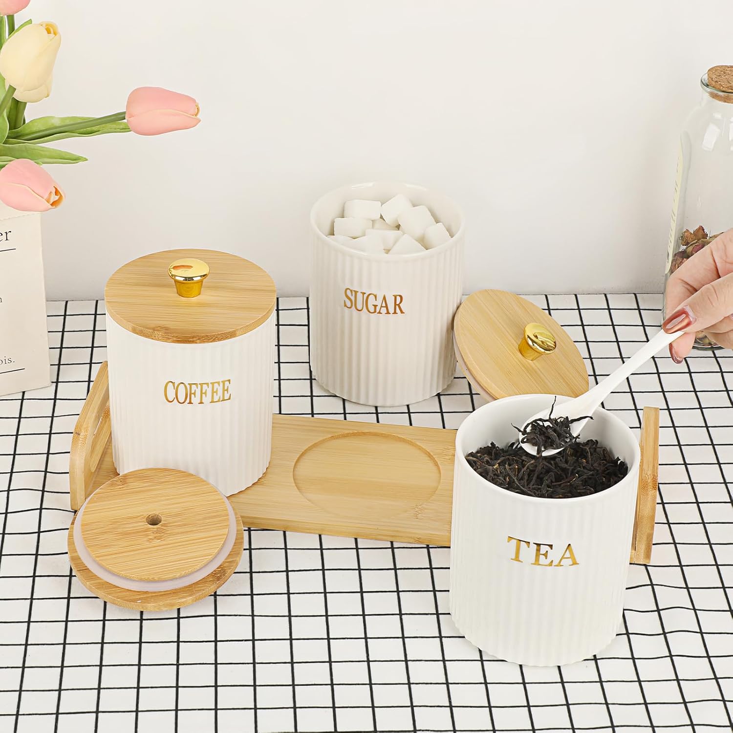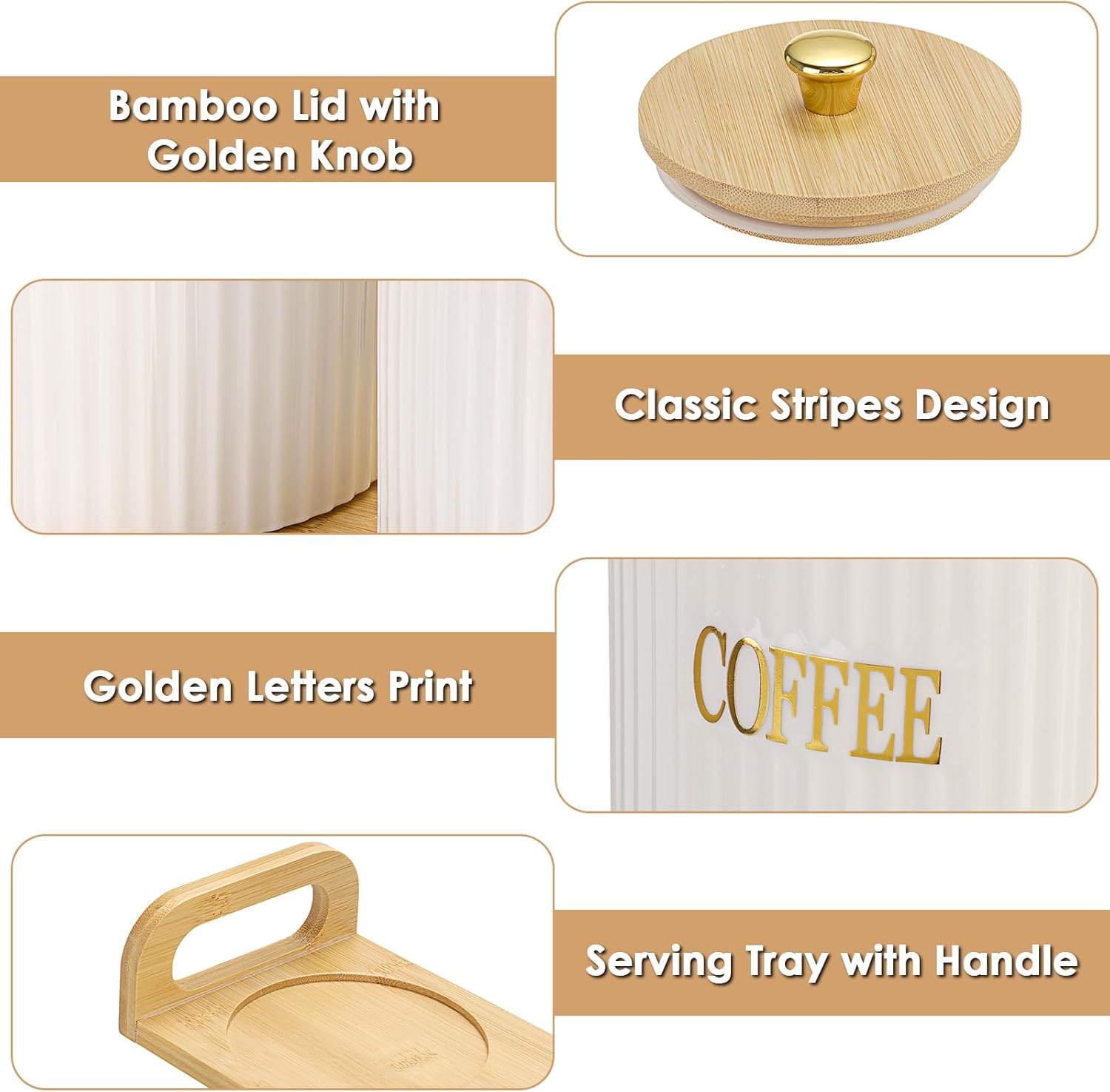 | Included Components | Bamboo Tray with Handle, Ceramic Canister for Coffee, Ceramic Canister for Sugar, Ceramic Canister for Tea |