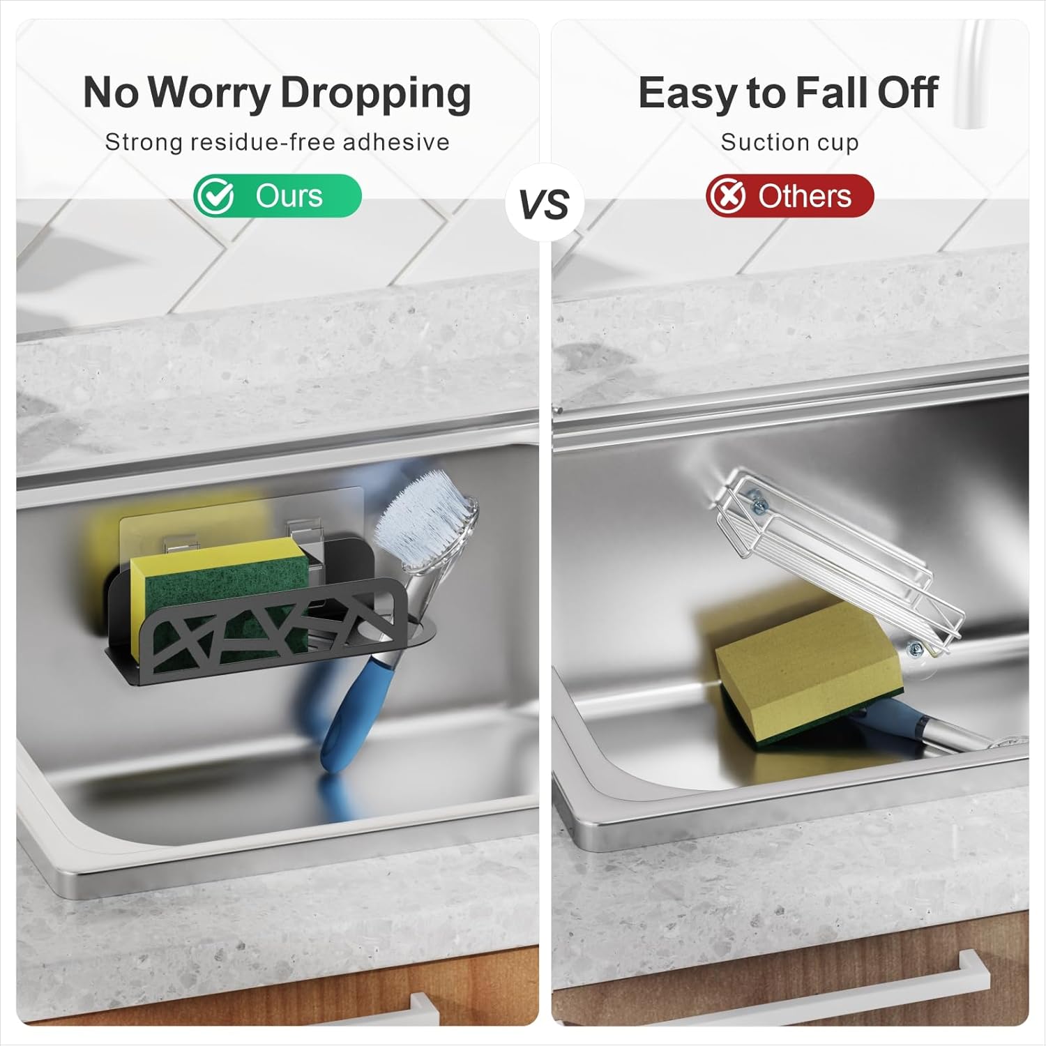 GSlife 2 in Set Sink Sponge Holder and Sink Drying Rack, Adhesive Sink Caddy and Expandable Sink Dish Rack, Bundle Sales